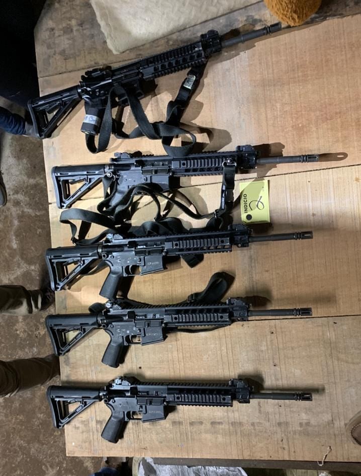 Las armas robadas fueron 10 fusiles de asalto AR15, 15 pistolas 9 milímetros, fundas para armas de fuego, cinco chalecos antibalas, cuatro radios de comunicación, 215 municiones de 9 milímetros, 579 municiones para fusil de asalto AR15, un juego de esposas y 18 cargadores