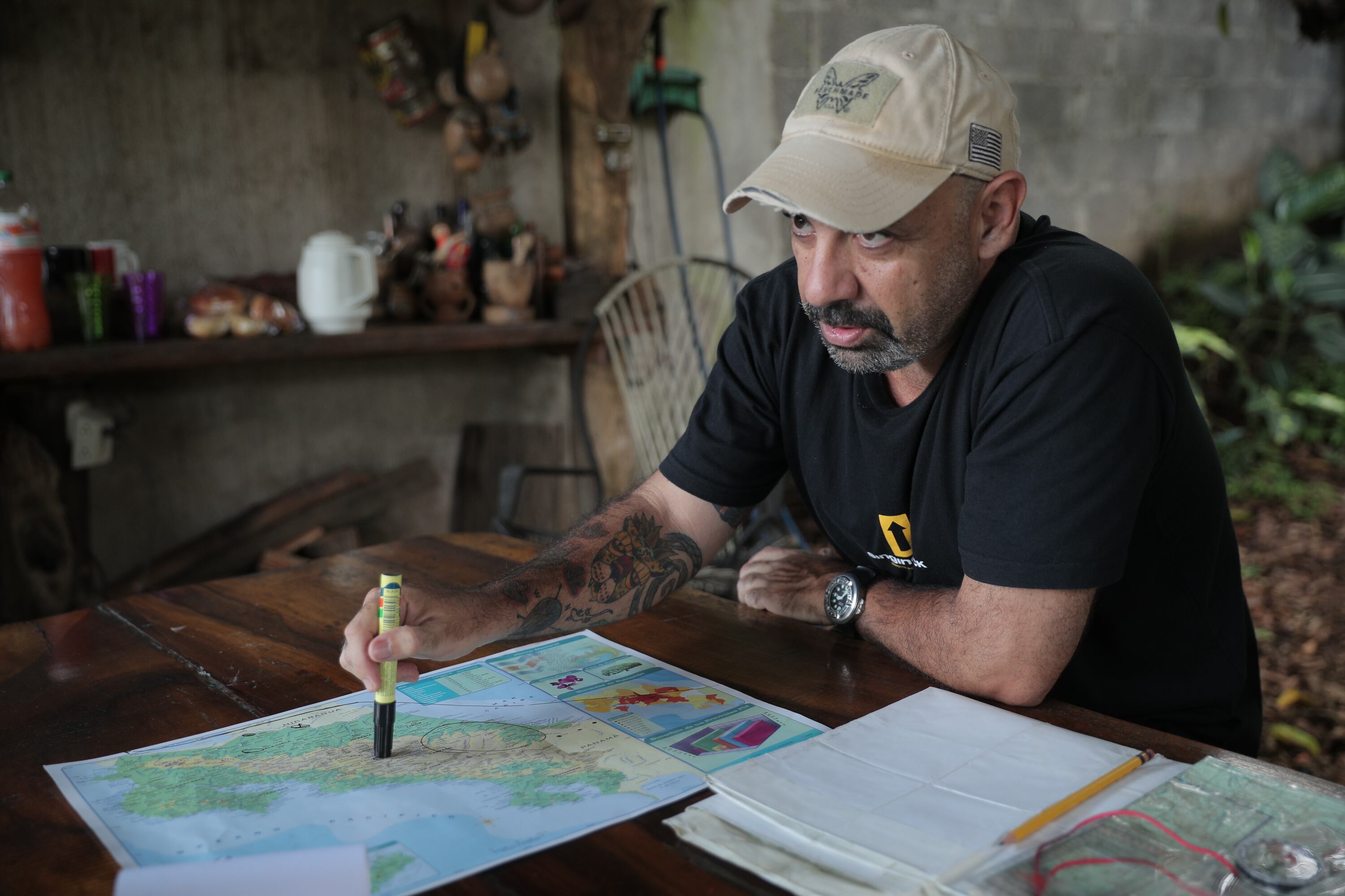 –Caminamos diez horas diarias, a las cuatro de la tarde paramos para buscar un lugar plano, cerca de un río, arroyo o naciente, para colocar el campamento. Hay que limpiar, ver que no tengamos árboles en mal estado cerca y colocar las hamacas, en eso duramos como una hora.