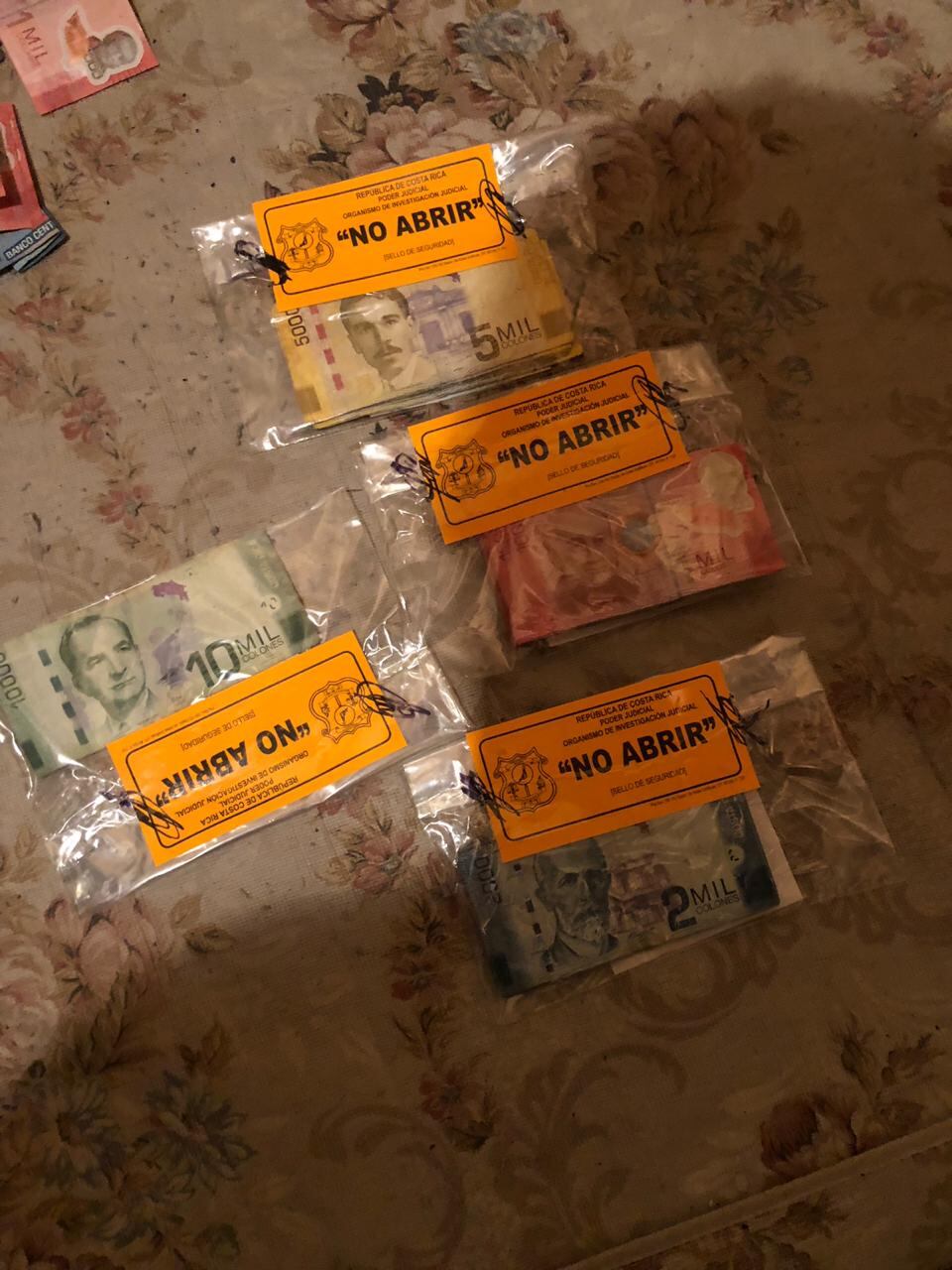 Durante el operativo, las autoridades decomisaron una AK47, una escopeta, un revólver, una arma 9 milímetros y gran cantidad de municiones, así como dos paquetes de marihuana comprimida, puchos y puntas de cocaína, también hallaron más de ¢7 millones en efectivo y 55 billetes falsos de $100.
