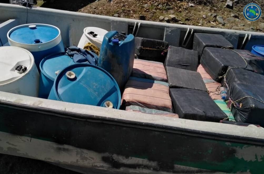 Los oficiales del Servicio Nacional de Guardacostas (SNG) del Ministerio de Seguridad Pública recibieron la alerta sobre la presencia de unas embarcaciones sospechosas y lograron interceptar dos lanchas, de las cuales una llevaba escondida la droga.