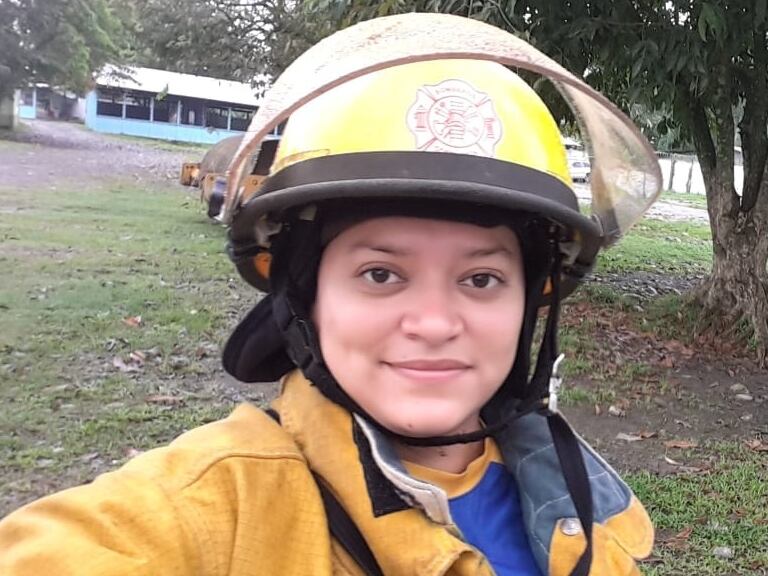 Ella es la menor de cuatro hermanos, tiene 32 años y desde hace 10 es bombera voluntaria en la estación de Batán, Limón, por lo que ama entregar su vida para salvar a otros, sin importar que sean desconocidos.