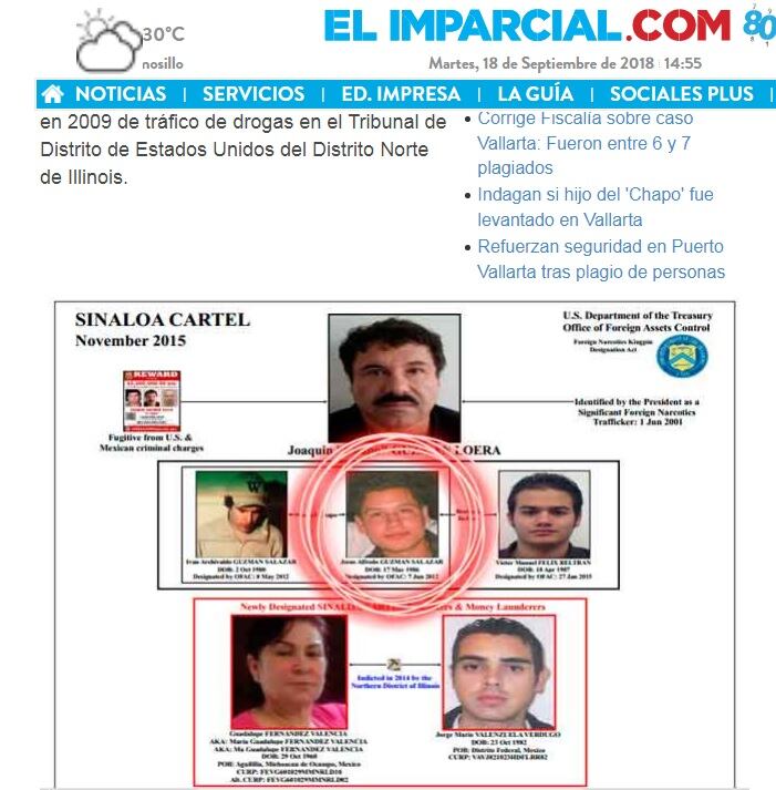 Al parecer Alfredillo movía la droga en lanchas, submarinos o aviones. Los medios de comunicación mexicanos señalan que Guzmán no tiene ningún cargo pendiente.