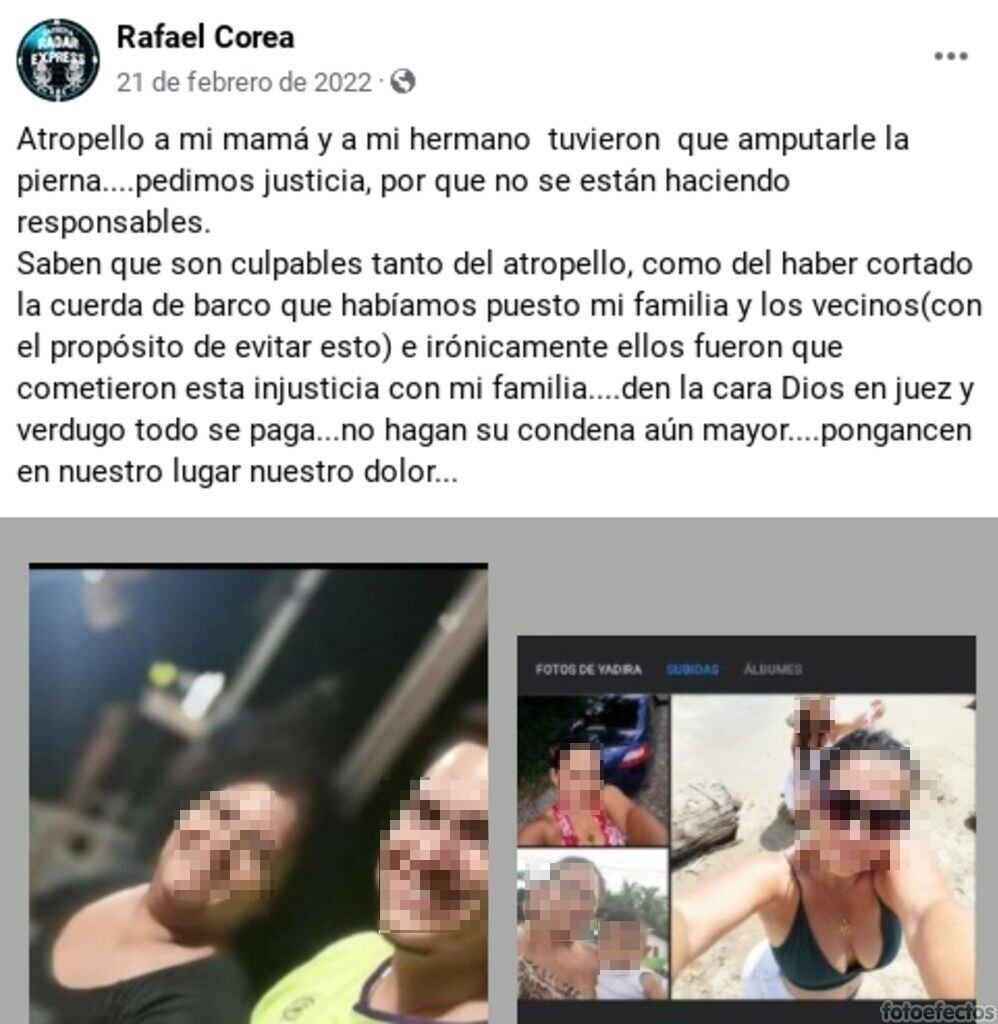 Al parecer, integrantes de esta familia los atropellaron y, como consecuencia de los golpes, Aracelly sufrió fracturas y a su hijo Yasdany le amputaron una pierna.