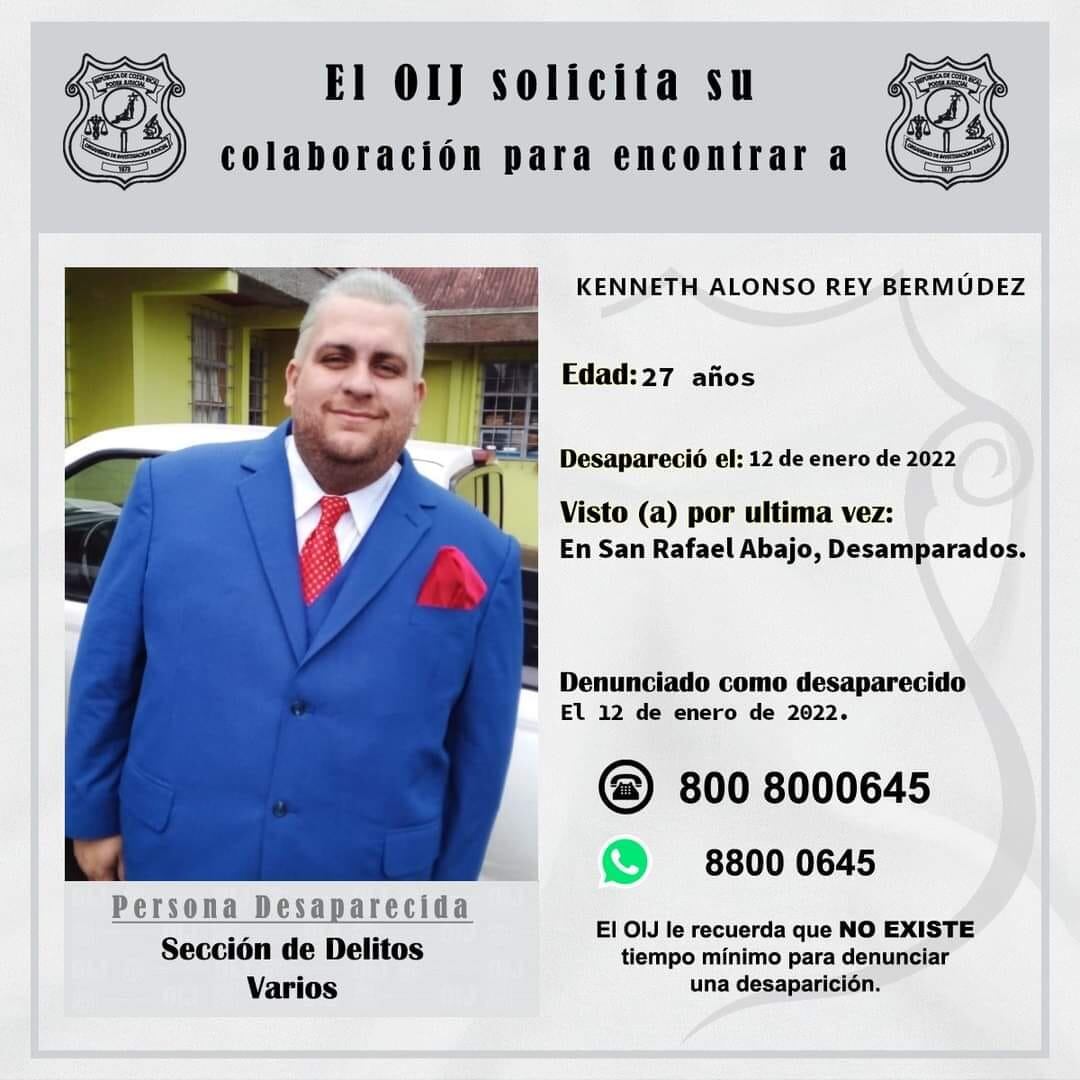Rey es vecino de San Rafael Abajo de Desamparados y a mediados de enero lo que se sabía es que salió de su casa en un carro blanco y no lo volvieron a ver, al momento de la detención ya no andaba el pelo teñido como siempre lucía.