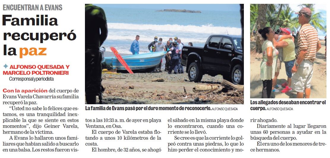 El hermano de Evans recordó que la tragedia ocurrió en medio de un paseo familiar que realizaron a Uvita de Osa 14 parientes. Todos se quedaron en un hotel, pero él no pudo acompañarlos.