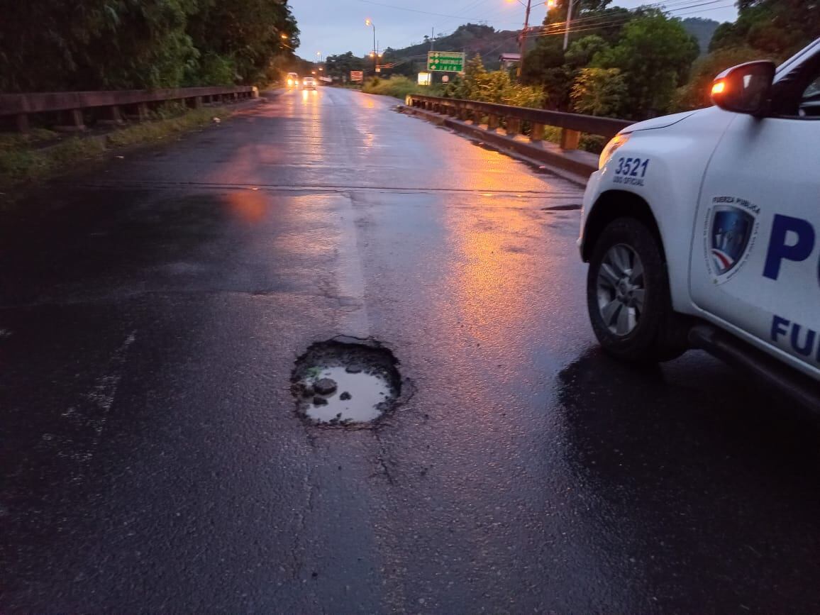 El hueco está en el carril por el que iba y detrás del oficial iba un tráiler, además, al momento del accidente estaba lloviznando y en la zona no hay iluminación, por todo eso no se percató del hueco que, por si fuera poco, estaba lleno de agua.