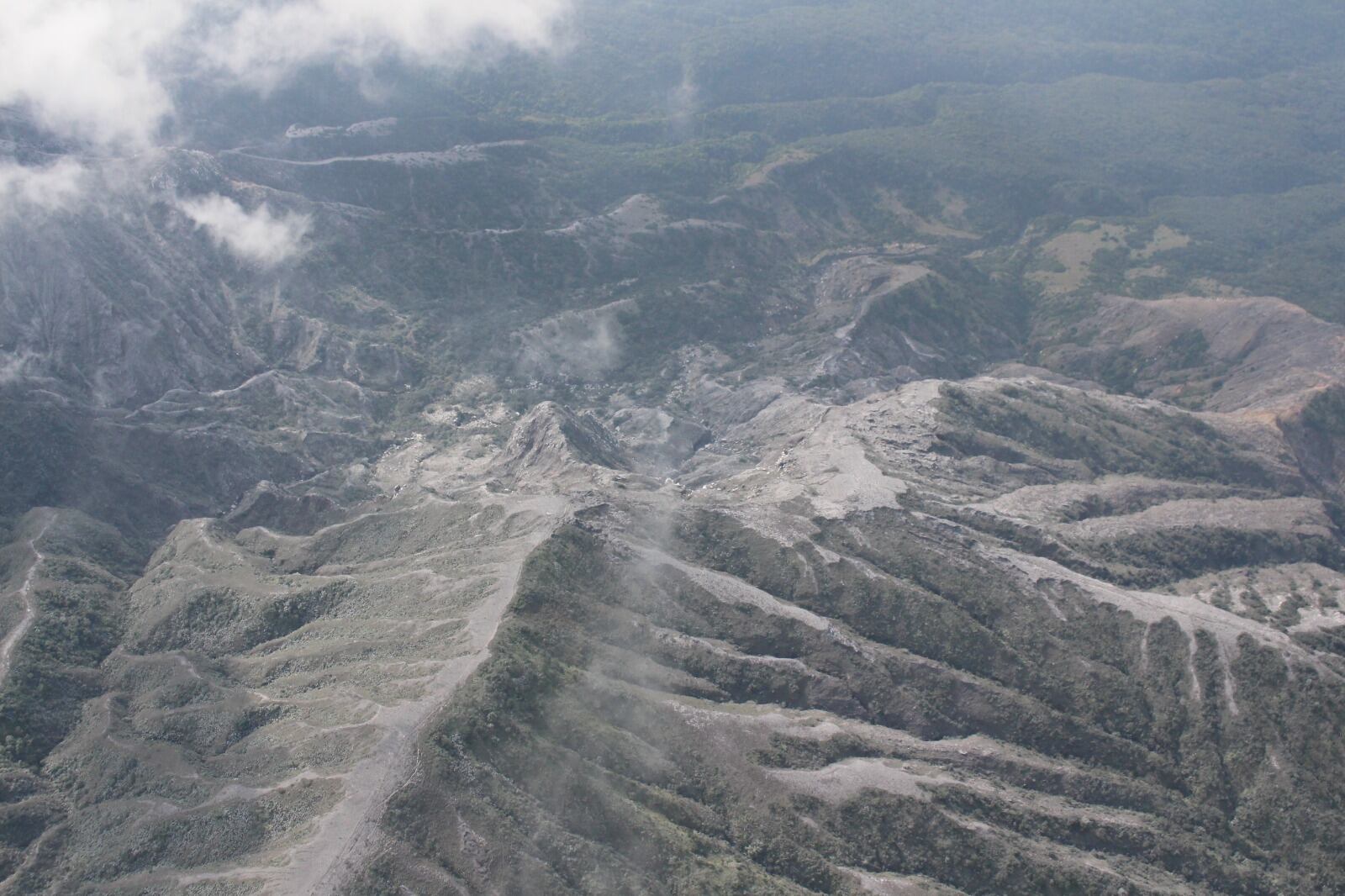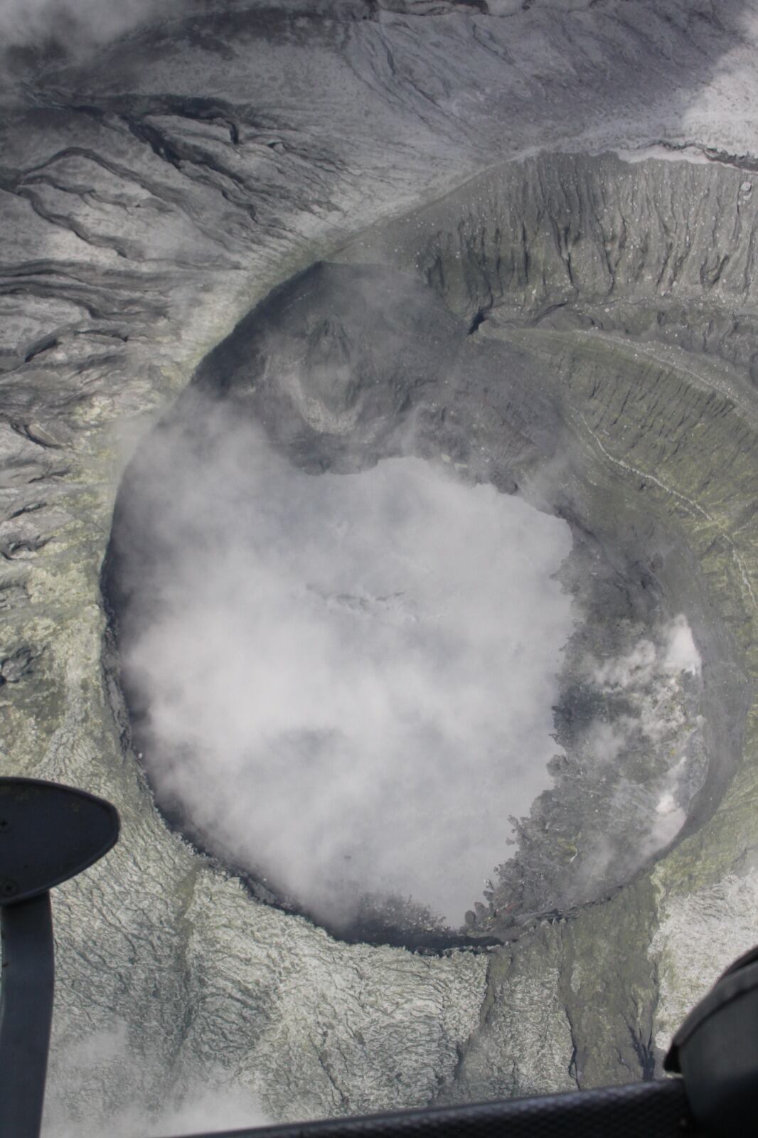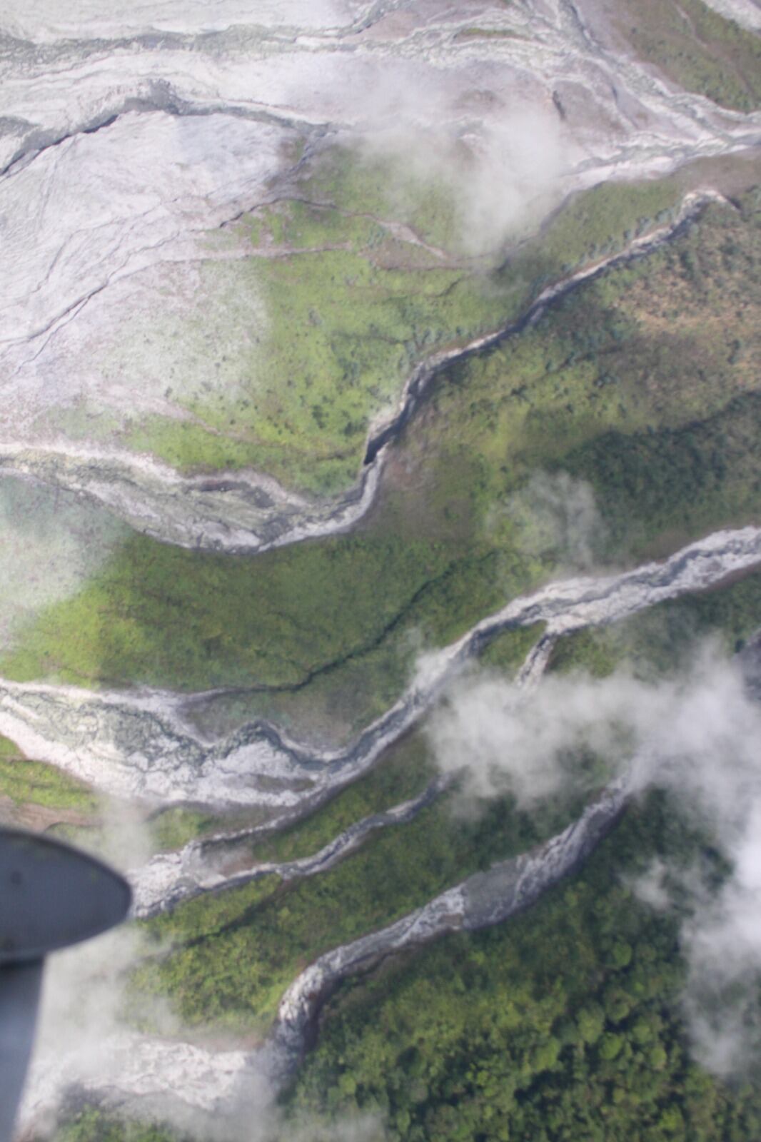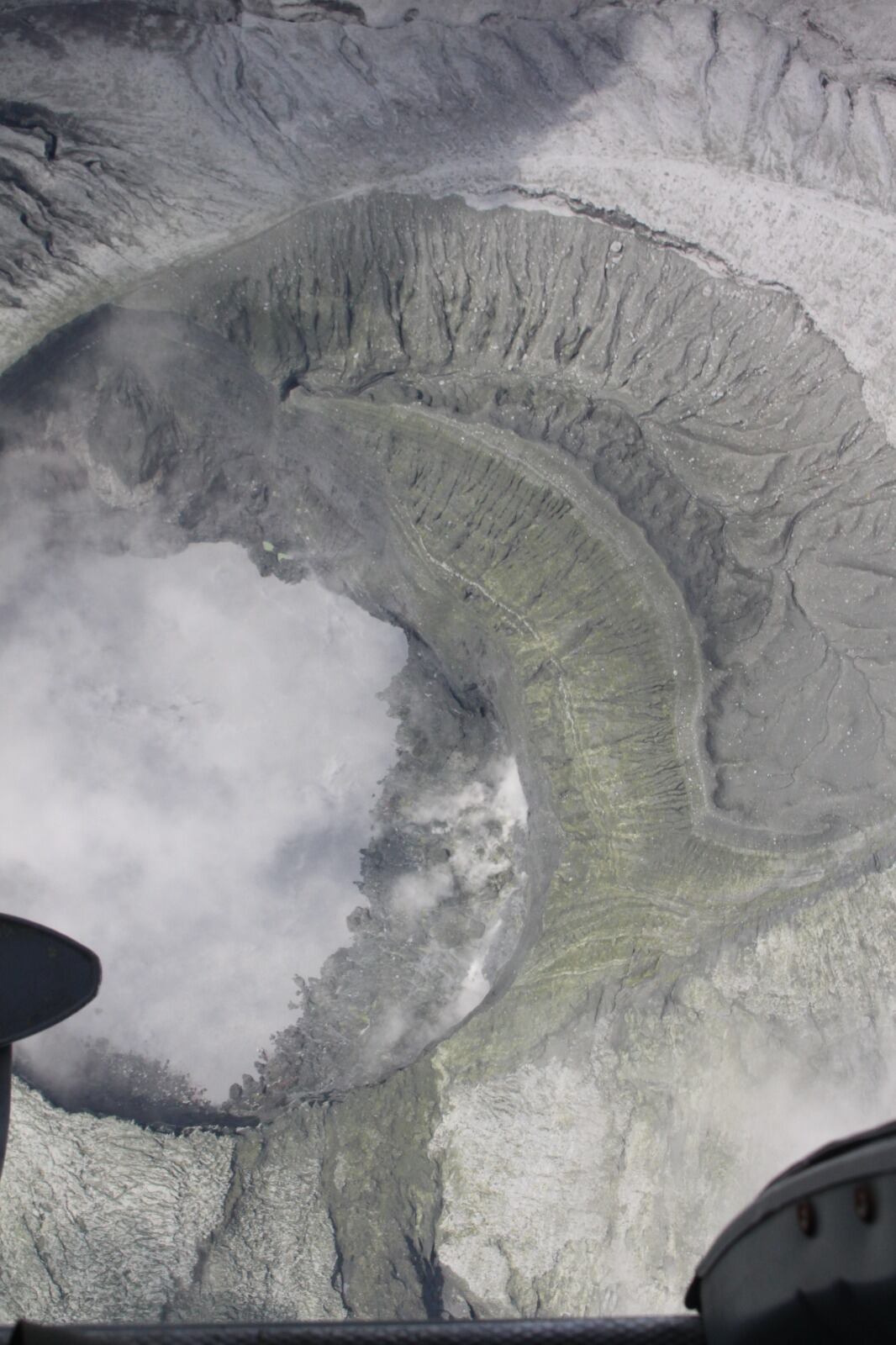 El geólogo de la CNE, Blas Sánchez, indicó que era importante realizar el sobrevuelo debido a que durante los últimos días hubo erupciones con expulsión de materiales.