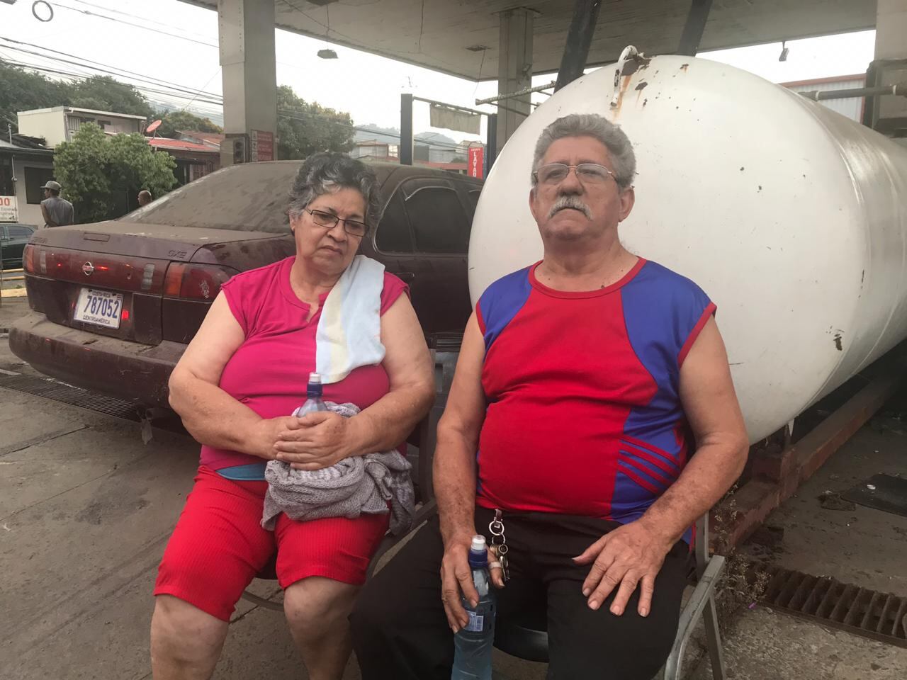 La pareja de viejitos forma parte de las siete familias que se quedaron sin su vivienda por incendio que ocurrió la tarde de este miércoles en Alajuelita, en la cuadra que está a la par de la antigua bomba de ese cantón, en la entrada a la urbanización La Chorotega.