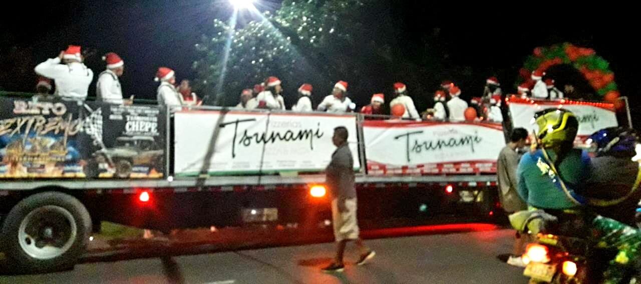 La banda distrital de Pital organizó un recorrido por varias comunidades y barrios para alegrar a los vecinos en la víspera de la Nochebuena. Para eso decoraron un tráiler con carreta que sirvió como carroza.