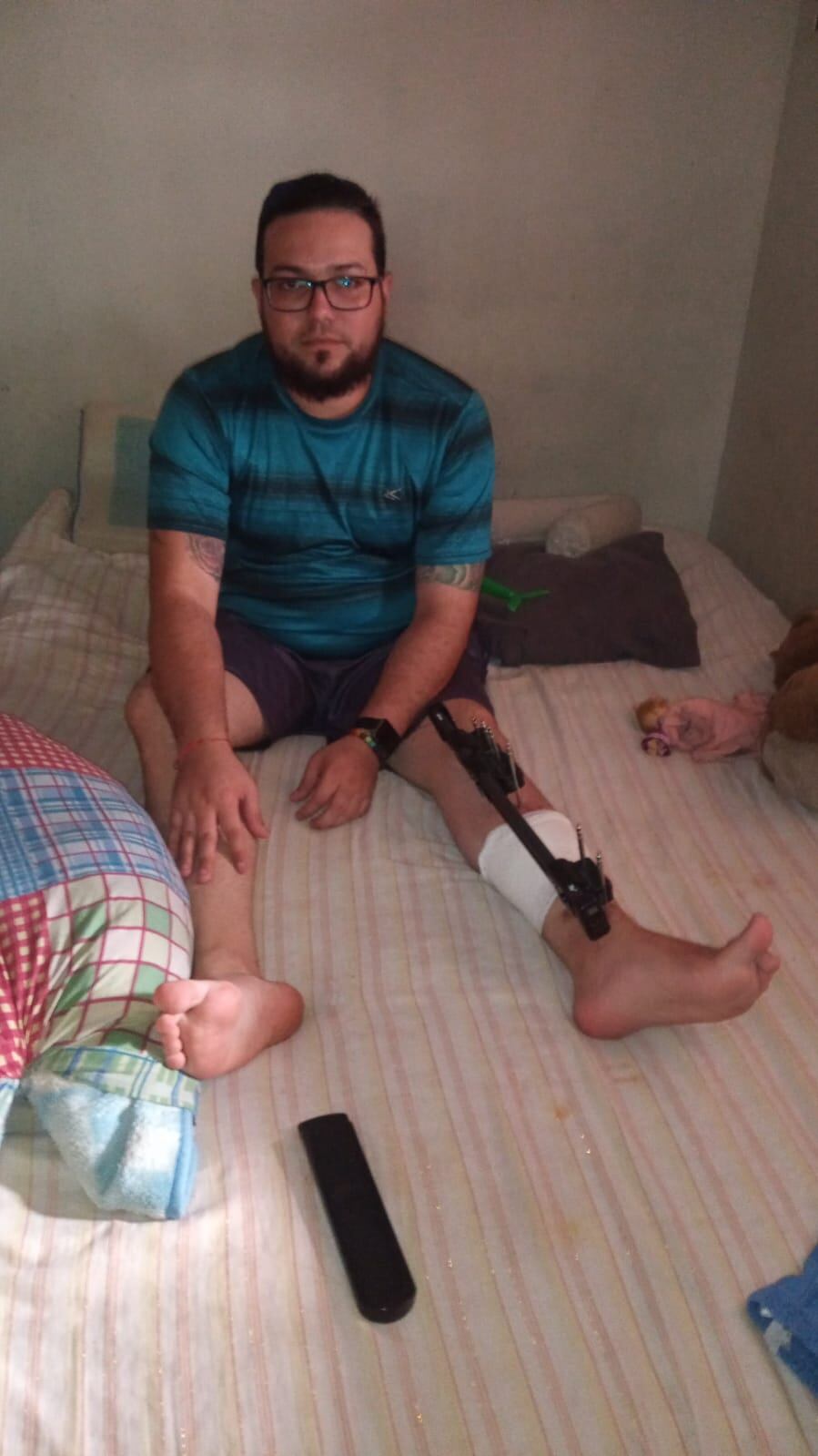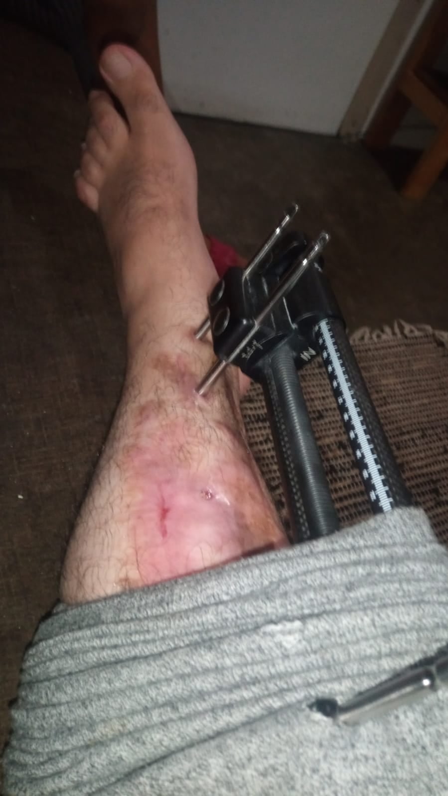 “Tengo un espaciador en el hueso para que la infección no se pase de lado a lado. Me van a cortar cinco centímetros de hueso para comenzar a darle vuelta a los pines de los tutores y que el hueso comience a crecer. El doctor me dijo que por lo menos debemos esperar unos seis meses para que el hueso crezca y comience a soldar, también me dijo que esta era la última posibilidad para salvar la pierna, porque de lo contrario me la van amputar”, expresó este papá.