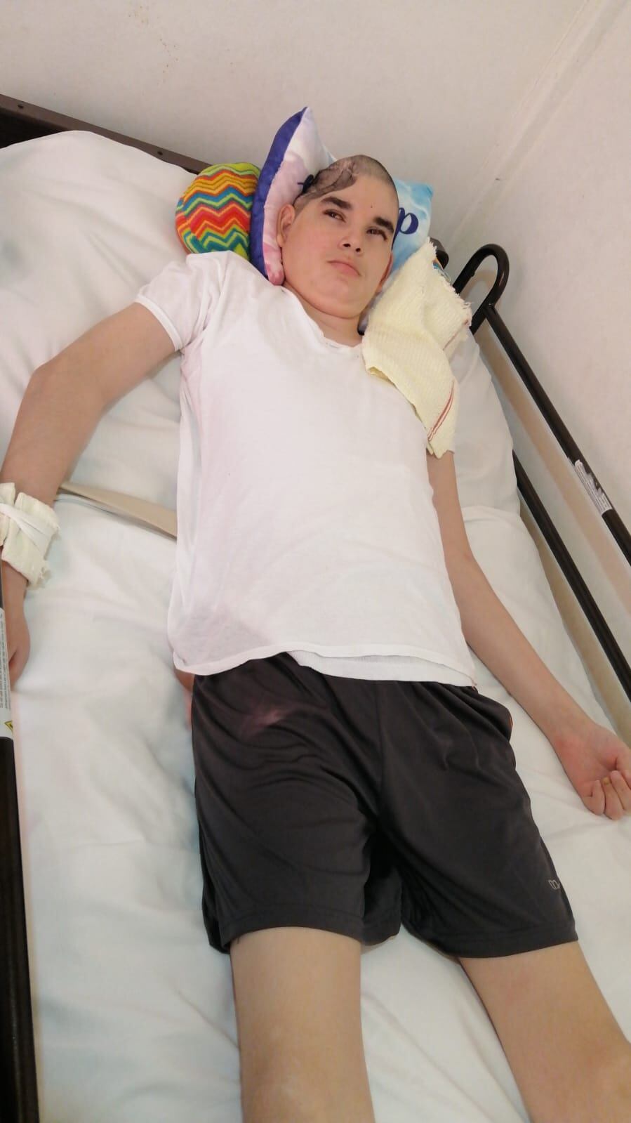 Gracias al trabajo de la fundación, Carlitos esta semana recibió la cama, pero necesitan galletas María, verduras, frutas, pollo y carne molida, atunes, lentejas y garbanzos que es lo que debe de comer por medio de la sonda, además de pañales talla M, toallitas húmedas y Ensure.