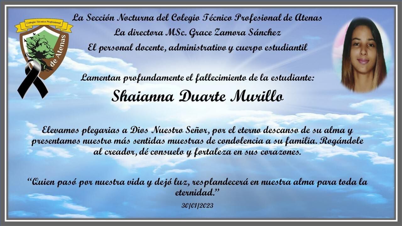 La información de su muerte fue confirmada por el Colegio Técnico Profesional de Atenas y el medio Diario 5 Atenas. La joven había estudiado en Electrónica Industrial en ese centro educativo.