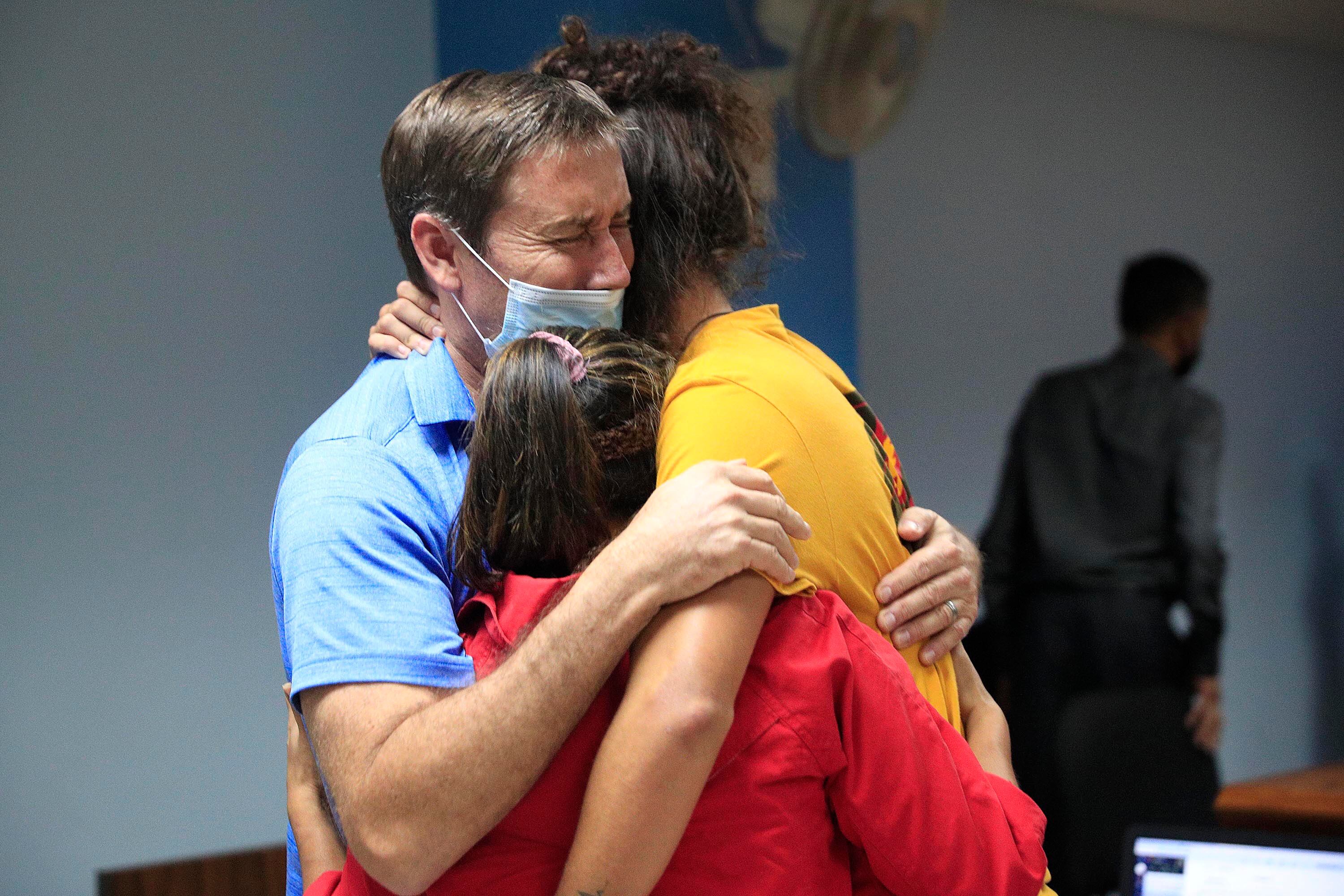 Apenas terminó el juicio, los tres guías se abrazaron entre ellos y luego se unieron a sus seres queridos. En medio del llanto varios dijeron “al fin se acabo esta larga pesadilla”.