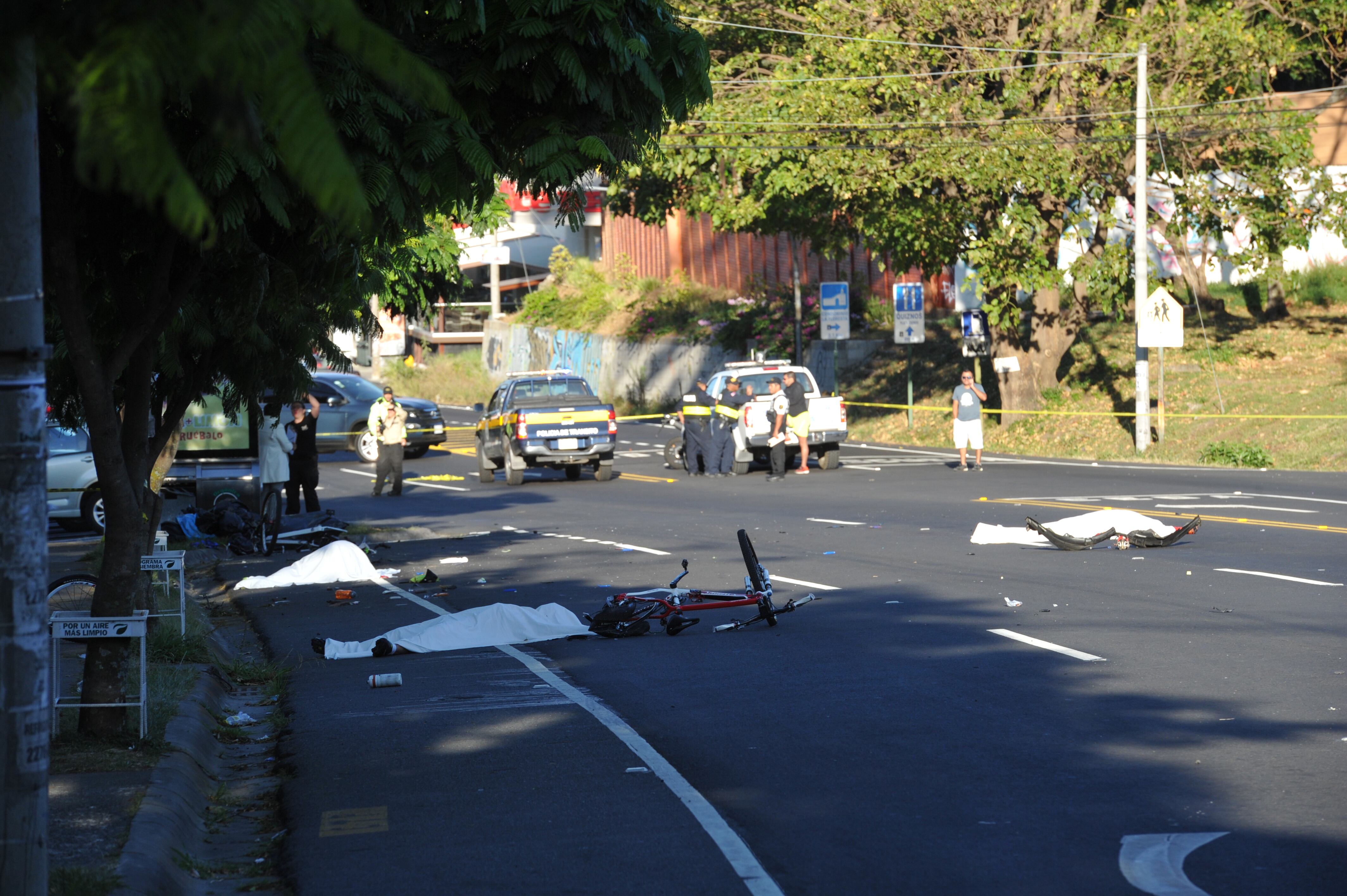 El hecho ocurrió cuando Mario Enrique Retana Pérez, de 49 años; Lenin Manrique Ortiz Quesada, de 46; Pablo Enrique Alcócer Alcócer, y Lucía del Carmen Mata Durán, de 38 años, viajaban en sus bicicletas a las 4:11 de la mañana, por el sector de Curridabat, por la carretera vieja a Tres Ríos y fueron atropellados.