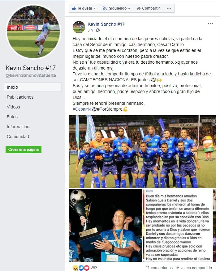 “Tuve la dicha de compartir tiempo de fútbol a tu lado y hasta la dicha de ser campeones nacionales juntos. Sos y serás una persona de admirar; humilde, positivo, profesional, buen amigo, hermano, padre, esposo y sobre todo un gran hijo de Dios”, expresó Sancho.