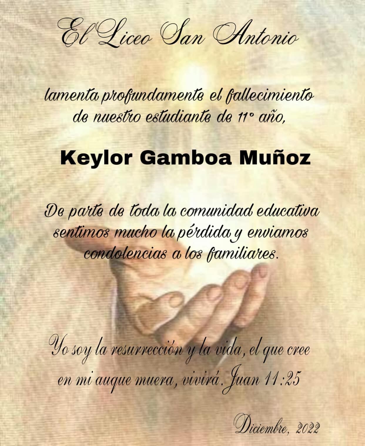 “Lo vamos a pasar al Liceo de San Antonio de Desamparados para que le den el último adiós los compañeros y las personas cercanas a él que no puedan trasladarse hasta Acosta”, mencionó.
