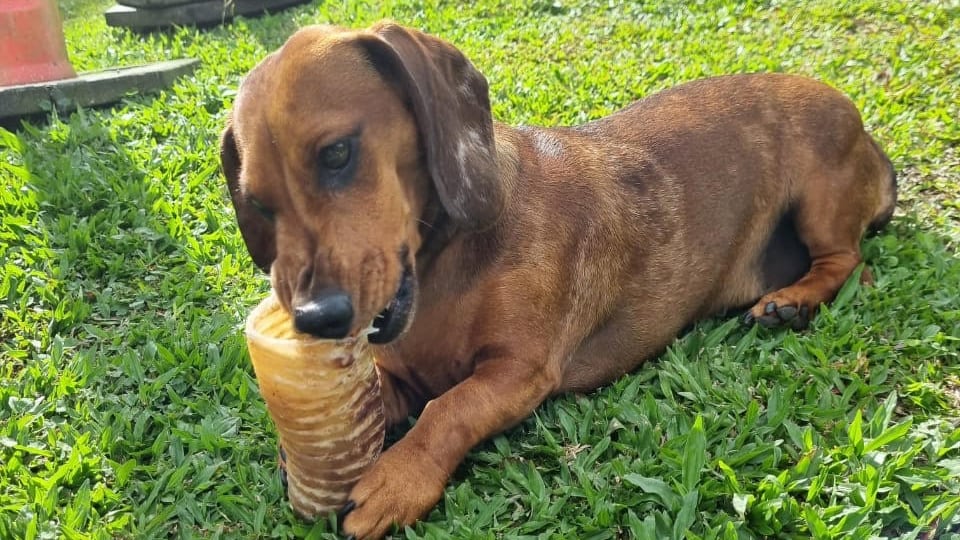 Es un perrito salchicha, tiene 2 años y medio, está castrado y tiene manchas en el cuerpo, su tamaño es Kaninche, el más pequeño de todos los salchichas.