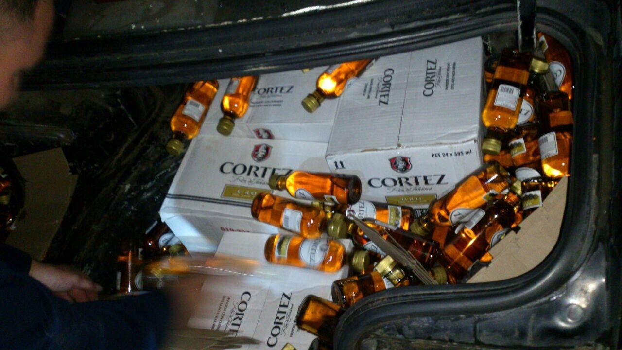 Un grupo de policías se paseó en los planes de un hombre de 22 años que llevaba en su carro un enorme cargamento de licor de contrabando.