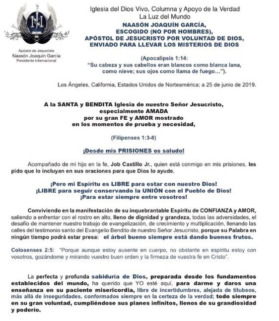 El líder de la iglesia La Luz del Mundo, Naasón Joaquín García, invitó desde la cárcel a más de 500 mil fieles de su iglesia para que asistan a la “santa cena” que se realizará en agosto en Guadalajara, Jalisco, en México.
