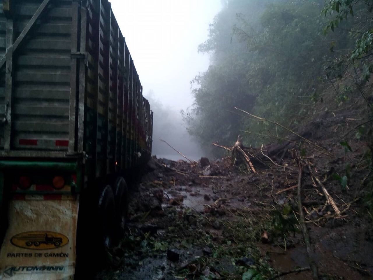 A eso de las 10 de la noche los conductores empezaron a reportar a las autoridades que estaban atrapados a lo largo de esa peligrosa carretera, por la caída de tierra y árboles, además de las fuertes lluvias.