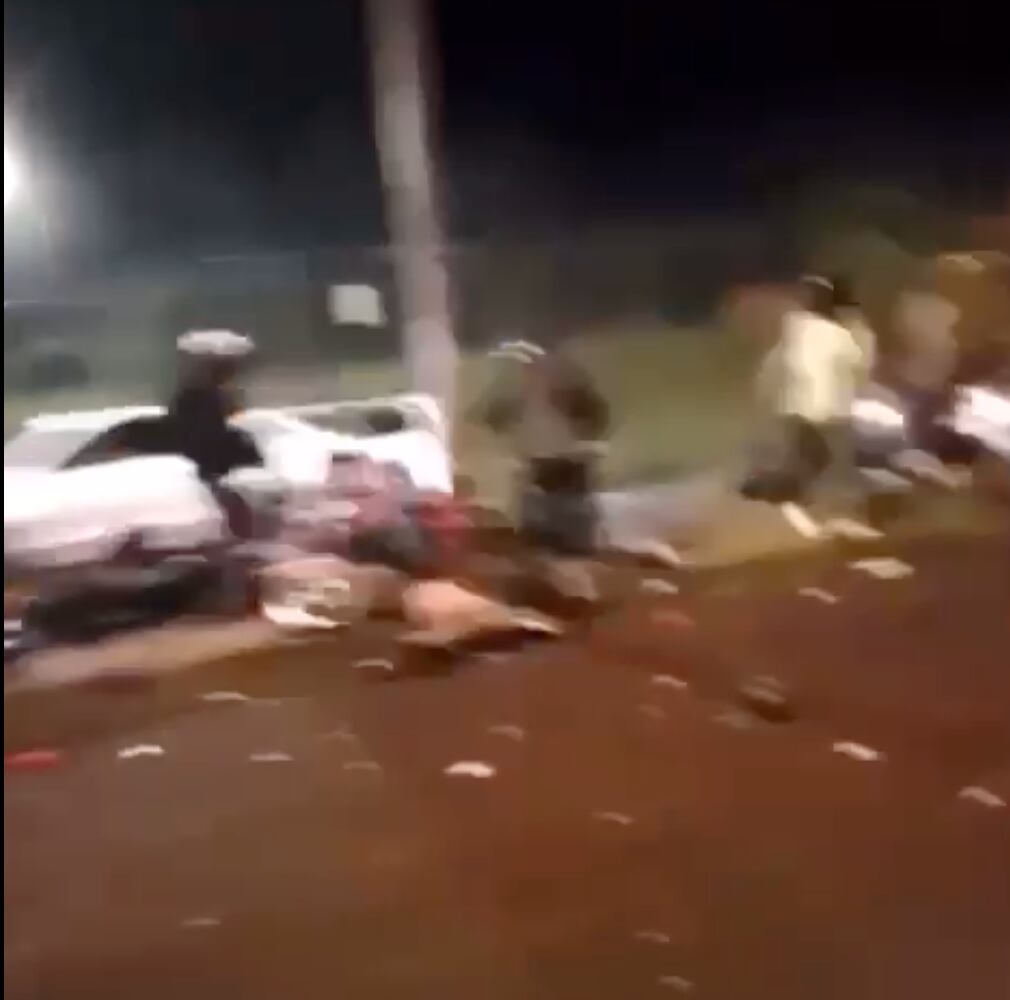 Al parecer, la ruta estaba siendo utilizada por “picones” y a ambos lados de vía estaban ubicados gran cantidad de motociclistas y “público” que “disfrutaban” de esta ilegal actividad. Al ser las 10:56 el conductor de un carro que pasó como alma que lleva el diablo perdió el control y arrastró a un grupo de personas ubicadas a un lado de la calle.