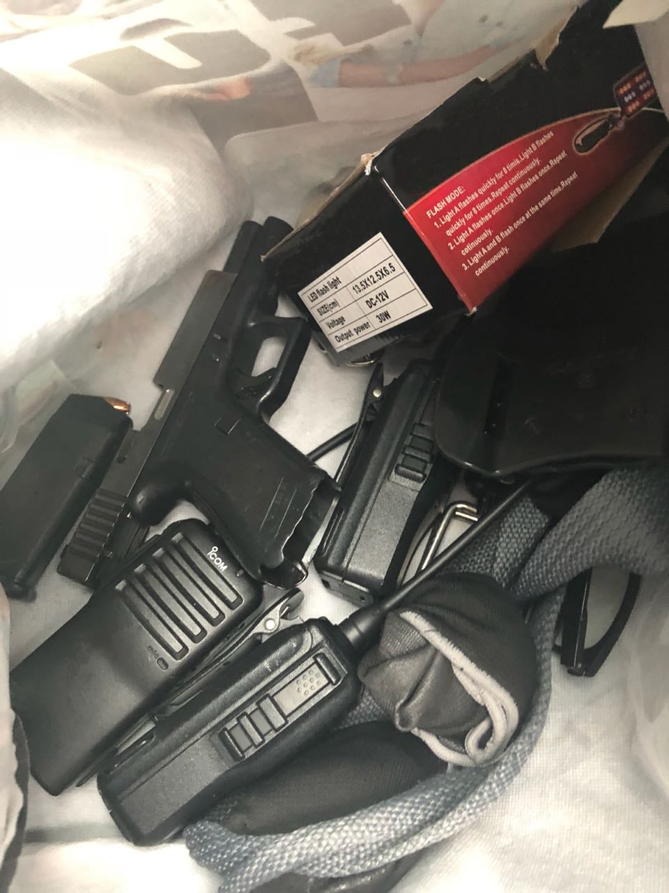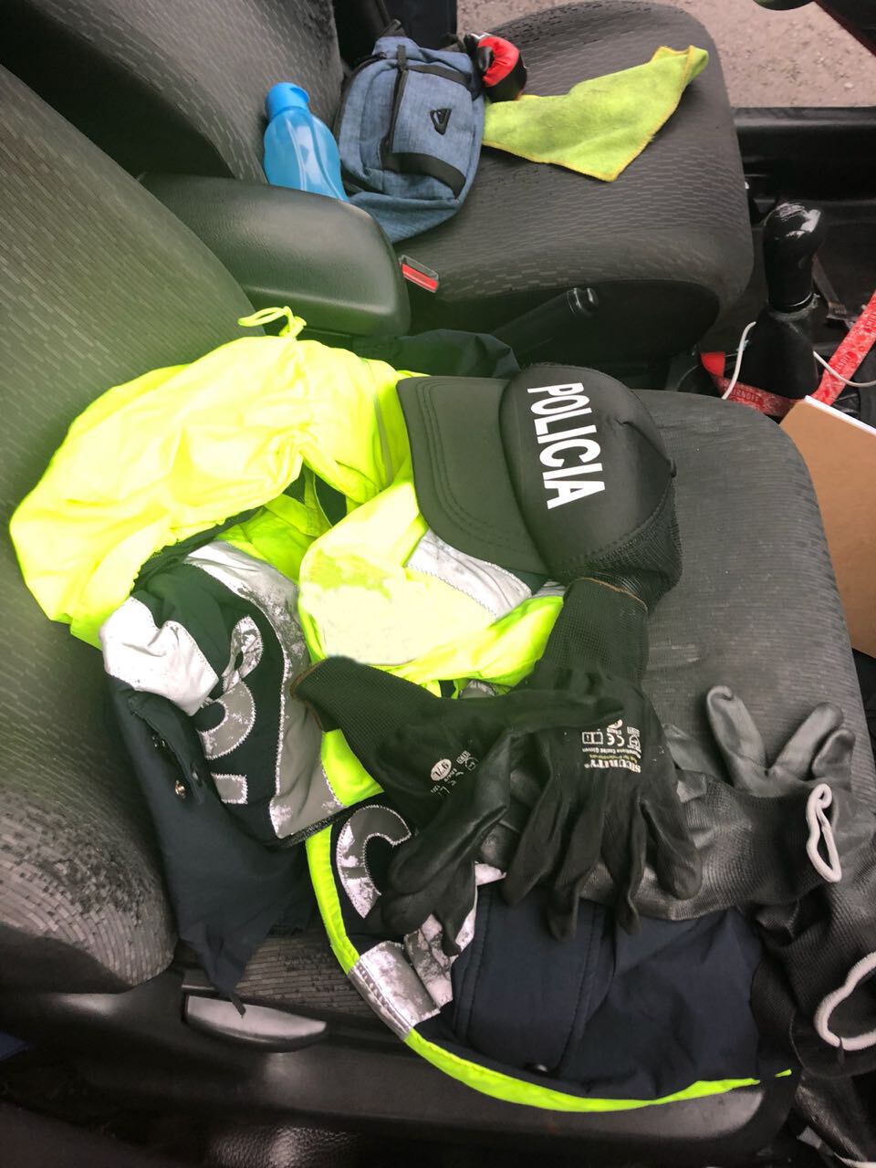 Pero esto no era lo único sospechoso que andaba Calderón, pues también tenía una bolsa en la que llevaba una vestimenta policial falsa, similar a la jacket impermeable que se usa en la Fuerza Pública, además de varios radios de comunicación.