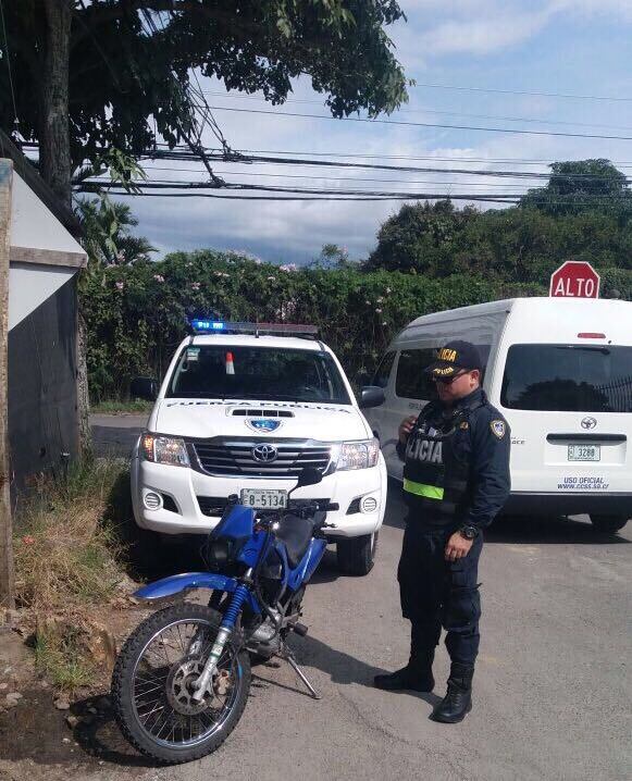El Ministerio de Seguridad Pública informó que la moto en la que iban los asaltantes fue encontrada después del golpe 100 metros sur de Multiplaza y tenía denuncia por robo. Había sido usada en un asalto ocurrido el 3 de noviembre.