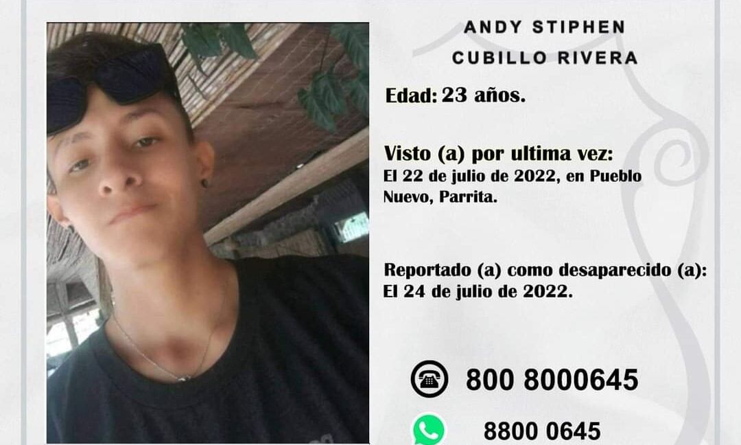 El cuerpo de Andy nunca apareció, pero los investigadores judiciales le dijeron que lo daban por muerto debido a una gran cantidad de sangre que encontraron en una casa en Parrita.