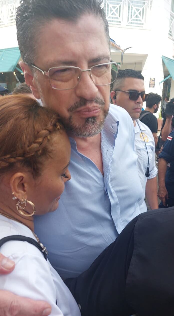 “Soy la mamá del muchacho de Parrita desaparecido, ayúdeme”, le expresó la mujer, mientras le afirmaba que le había dado el voto y al igual que su hijo desaparecido, en ese momento Chaves la abrazó.