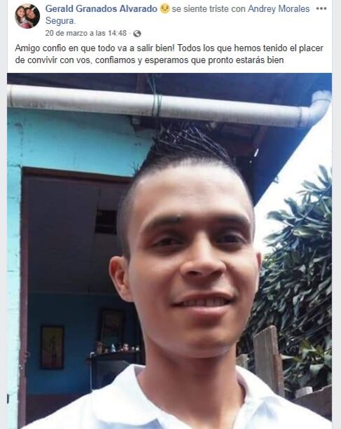 Andrey Morales Segura, de 27 años, recibió un balazo en la cabeza el lunes pasado en la madrugada, en las afueras del bar El Pilón, en San Rafael Arriba de Desamparados, donde estaba trabajando como cuidacarros.