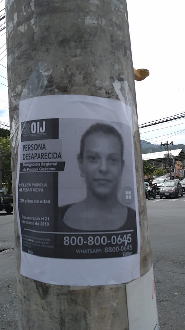 “Fui a la municipalidad de Alajuelita y ellos me ayudaron mucho, me prometieron subir la foto de mi hija en un Facebook que ellos tienen y también le tomaron fotos a las imágenes que yo llevaba para pegarlas y estar pendientes por si la llegan a ver”, dijo la mamá.