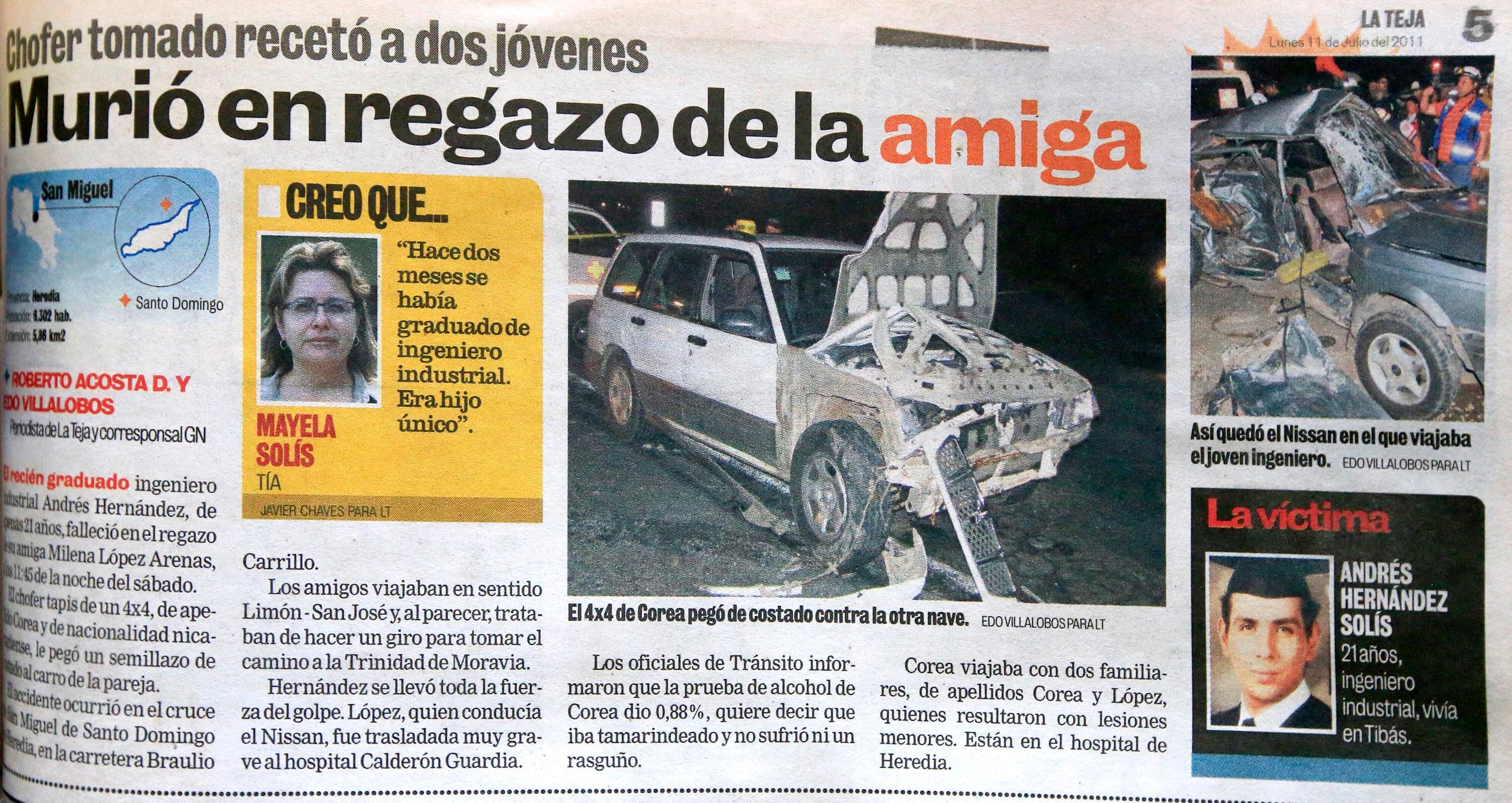 Álvaro Andrés Hernández Solís era el hijo de doña Vivian y él murió por culpa de un chofer que, en apariencia, iba ebrio, manejaba a alta velocidad y además se brincó un semáforo.