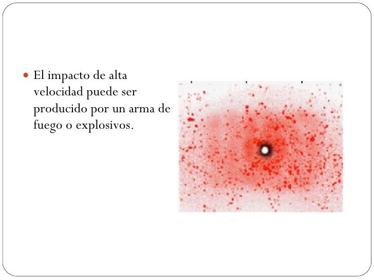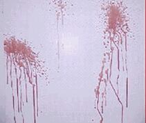 Por ejemplo, las manchas causadas por un disparo se ven como pequeñas gotitas que quedan esparcidas alrededor del punto en donde pegó la bala. En el caso de un ataque con un cuchillo las manchas suelen quedar más cargadas de sangre por lo que se da un “escurrimiento” hacia abajo cuando alcanzan una pared.
