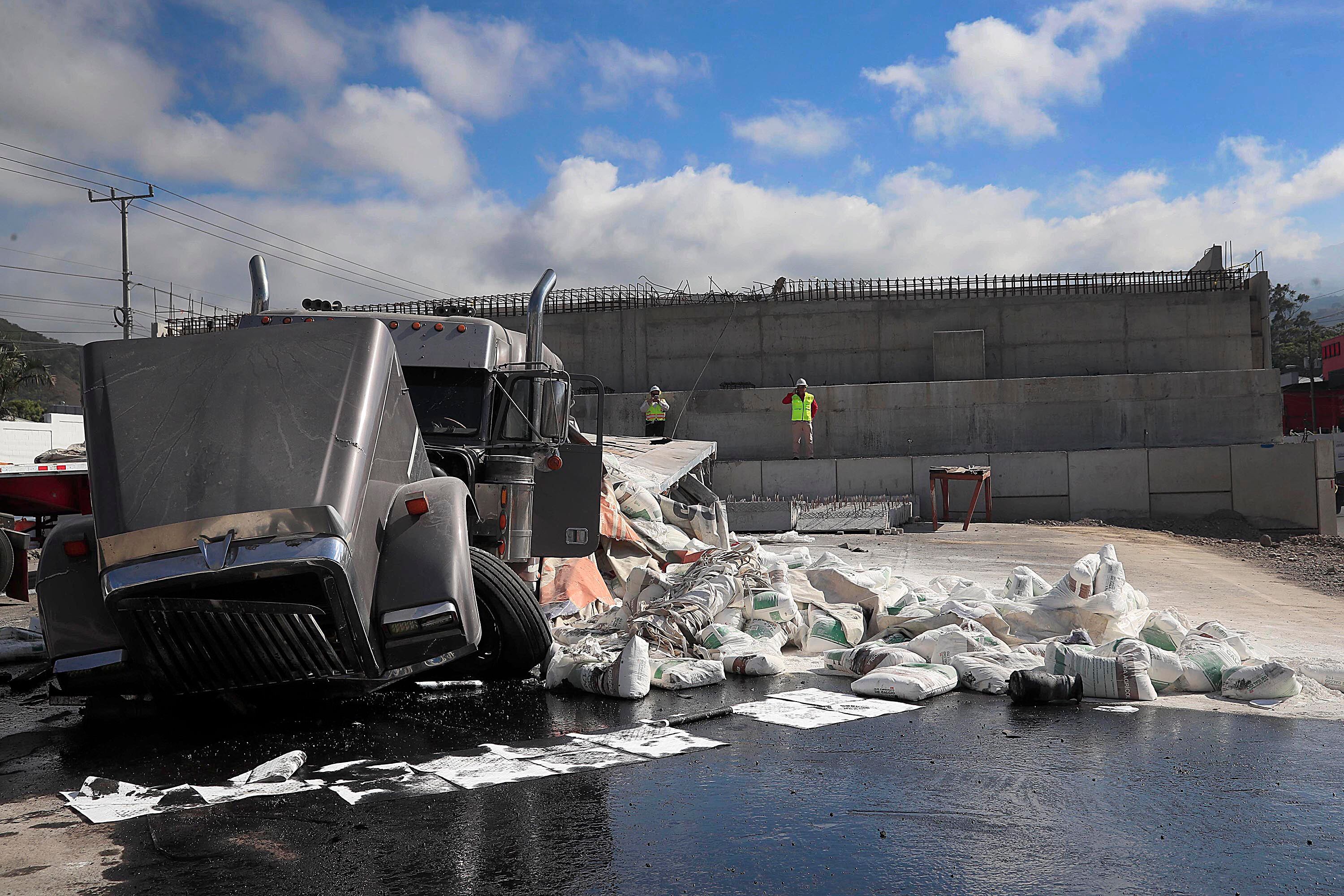 Tras quedarse sin frenos cuesta abajo, un trailero apellidado Alvarado realizó una acrobática maniobra para evitar que su vehículo, el cual iba cargado con sacos de cal, causara una tragedia que posiblemente hubiera cobrado la vida de varias personas.
