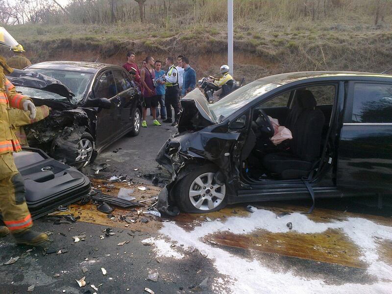 Un kilómetro antes del peaje de Ciudad Colón, en el sentido Caldera–San José el carro de Leiva fue chocado por el que llevaba Castro, quien invadió el carril.