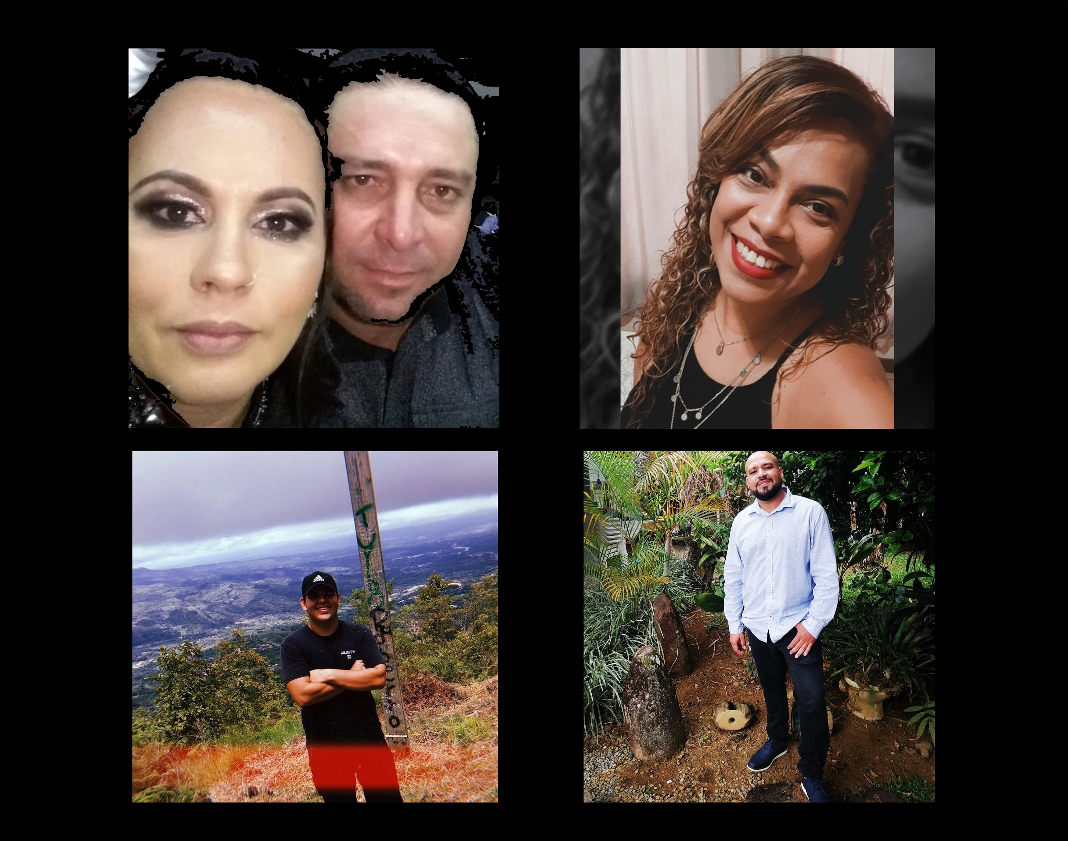 Las víctimas fueron César Mauricio Quesada Cáscante, su esposa, Claudia Alina Villarevia Rivera; el hijo mayor del matrimonio, Daniel Quesada; así como los novios Susan Zúñiga Rodríguez y Willy Borbón Muñoz. Además del dueño de la propiedad en la que ocurrió el ataque, el estadounidense Stephen Paul Sandusky.