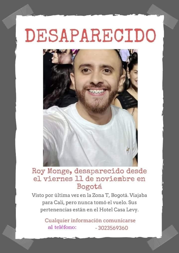 Verónica detalló que el martes 8 de noviembre anterior Monge viajó a Bogotá, donde estuvo unos días y compartió con varias amistades. Para este sábado 12 de noviembre debía viajar a Cali, incluso ya tenía su tiquete, sin embargo nunca llegó al aeropuerto y tampoco se comunicó con su familia situación que preocupó a sus seres queridos en suelo tico.