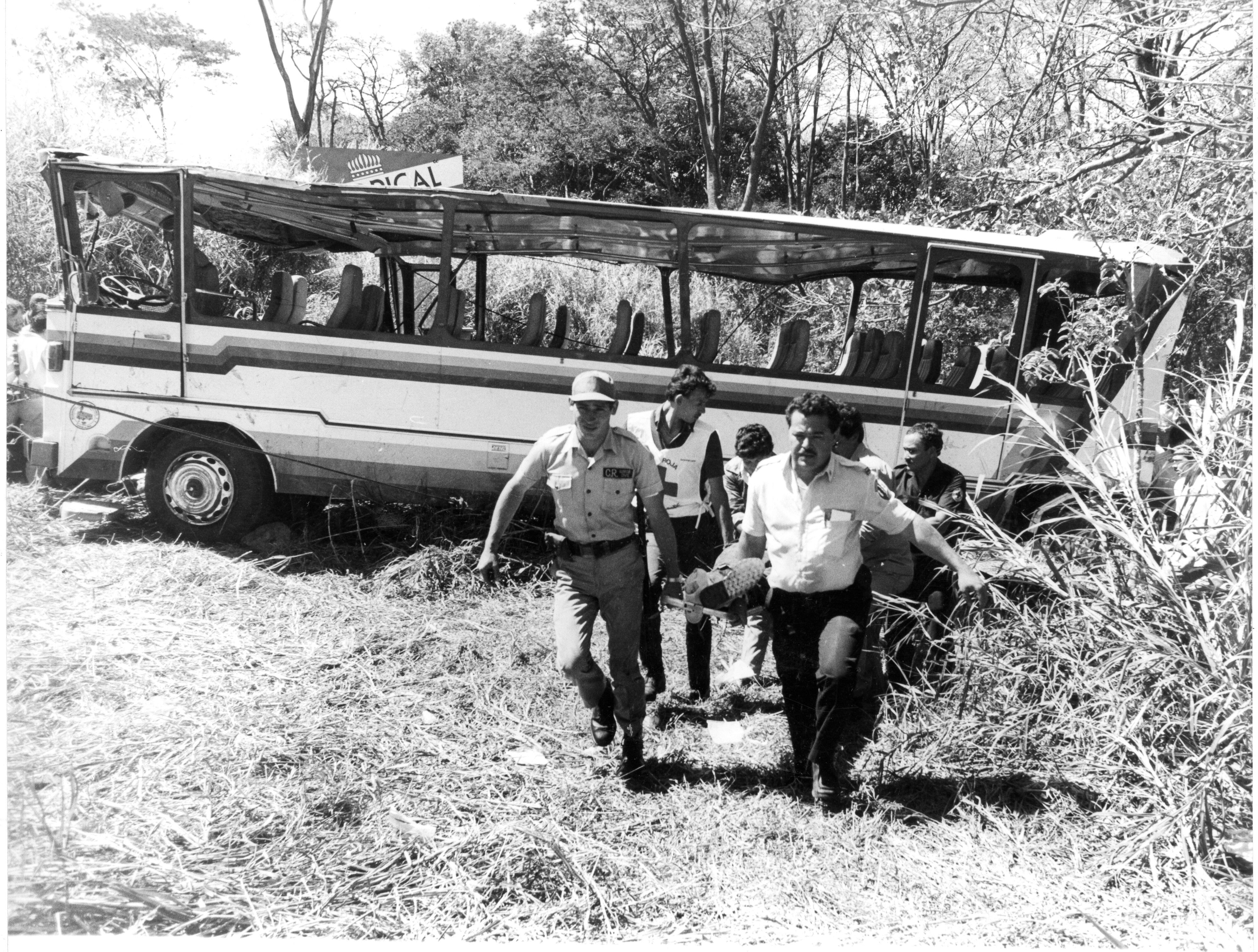 Segnini era muy alto y eso provocó que sufriera fuertes y mortales golpes al caer el bus en el barranco; él fue una de las cuatro personas que murió en el sitio.