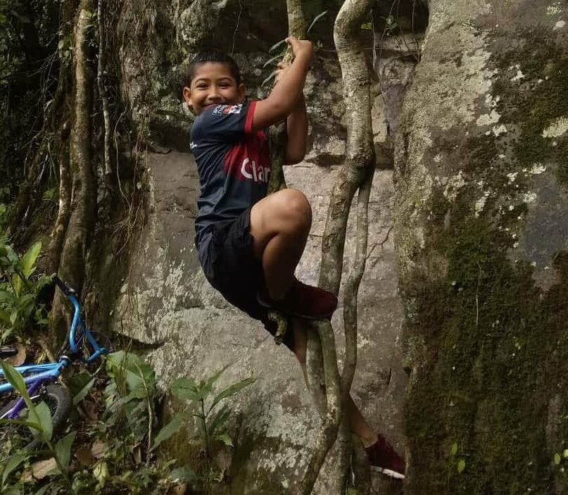 “Él chiquito estaba de visita en la casa de la abuelita, en Peralta de Turrialba y estaba con otros niños en la parte trasera de la casa, donde hay una piscinita. Ellos estaban jugando con una bola y se les fue a una zanja y Santi fue a recogerla, cuando volvió tenía como un raspón en la pierna, pero él nunca vio que lo mordiera nada ni sintió nada extraño.