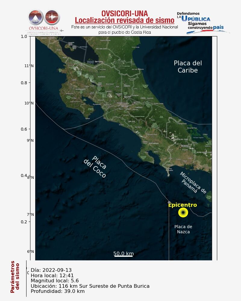 El epicentro del temblor fue 116 kilómetros al sureste de punta Burica, aseguró el Observatorio Vulcanológico Nacional (Ovsicori).