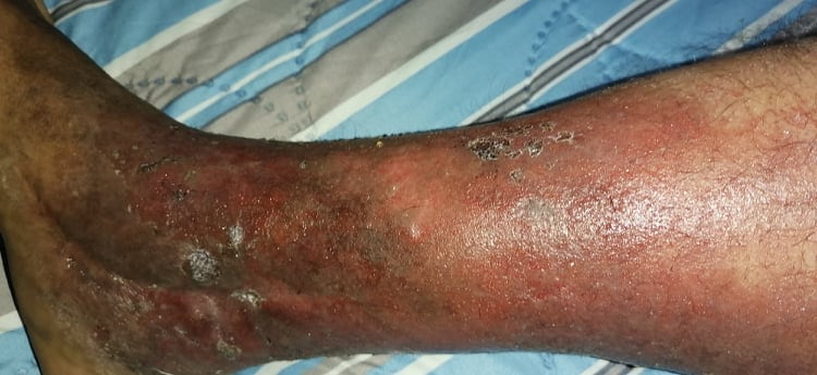 “En la UCI me operaban a diario, mi pierna era como ver un bistec cuando se quema por el frío, se pone negro y hay que cortarlo para ir sacando lo malo (infección). Cuando ya me pasaron a ortopedia me operaban de día por medio y así fue disminuyendo, me ponían una gasa que se pegaba al hueso y la piel y al quitarla se volvía completamente amarilla”.