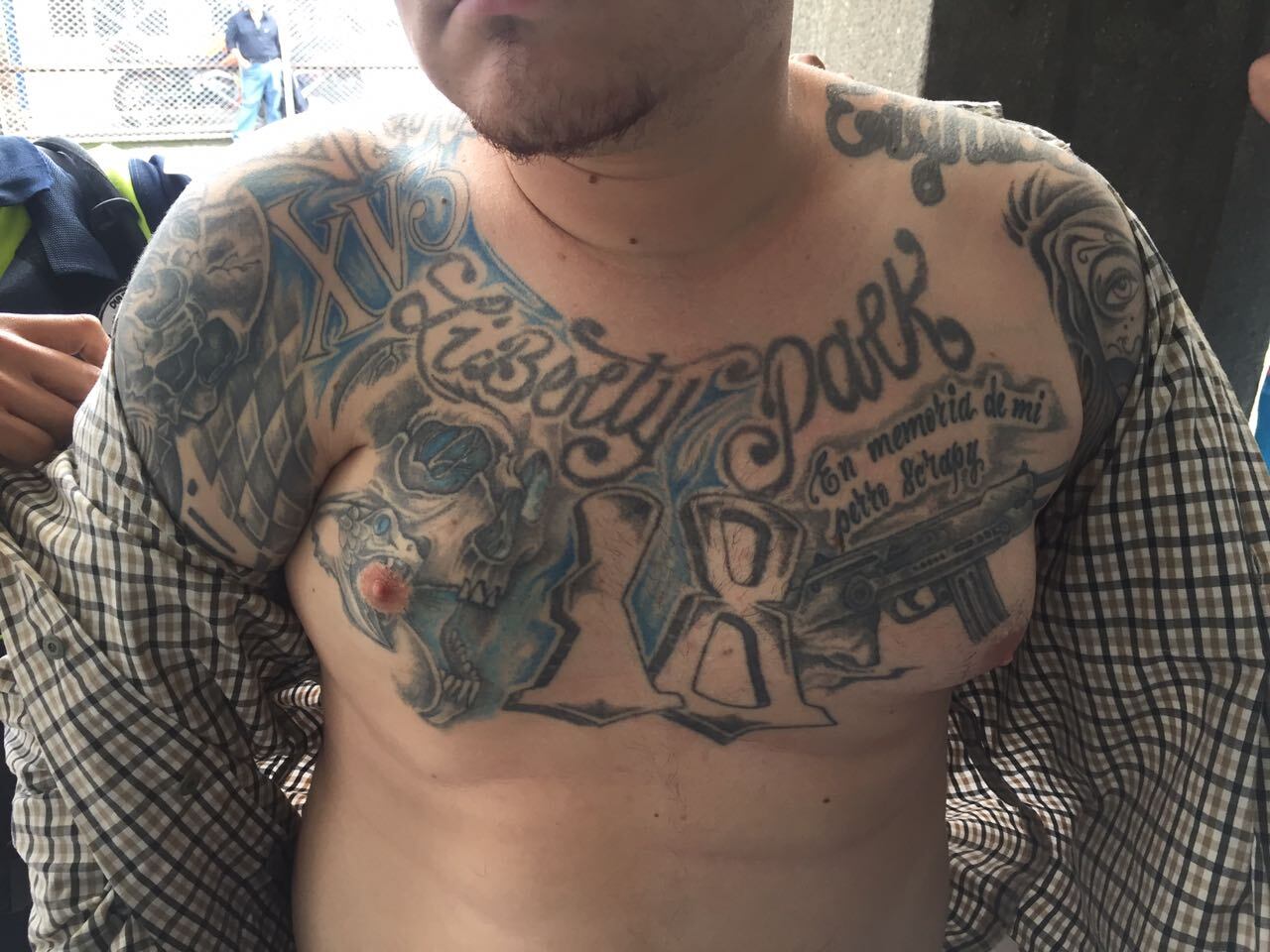 Alfaro tiene de 26 años y varios tatuajes alusivos a la peligrosa mara 18 (M18).