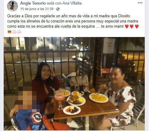 El sábado ella salió a comer con su mamá, Ana Villalta, para celebrarle el cumpleaños. Angie subió a su página de Facebook unas fotos en las que se veían disfrutando en un restaurante junto al hijo menor de la modelo.