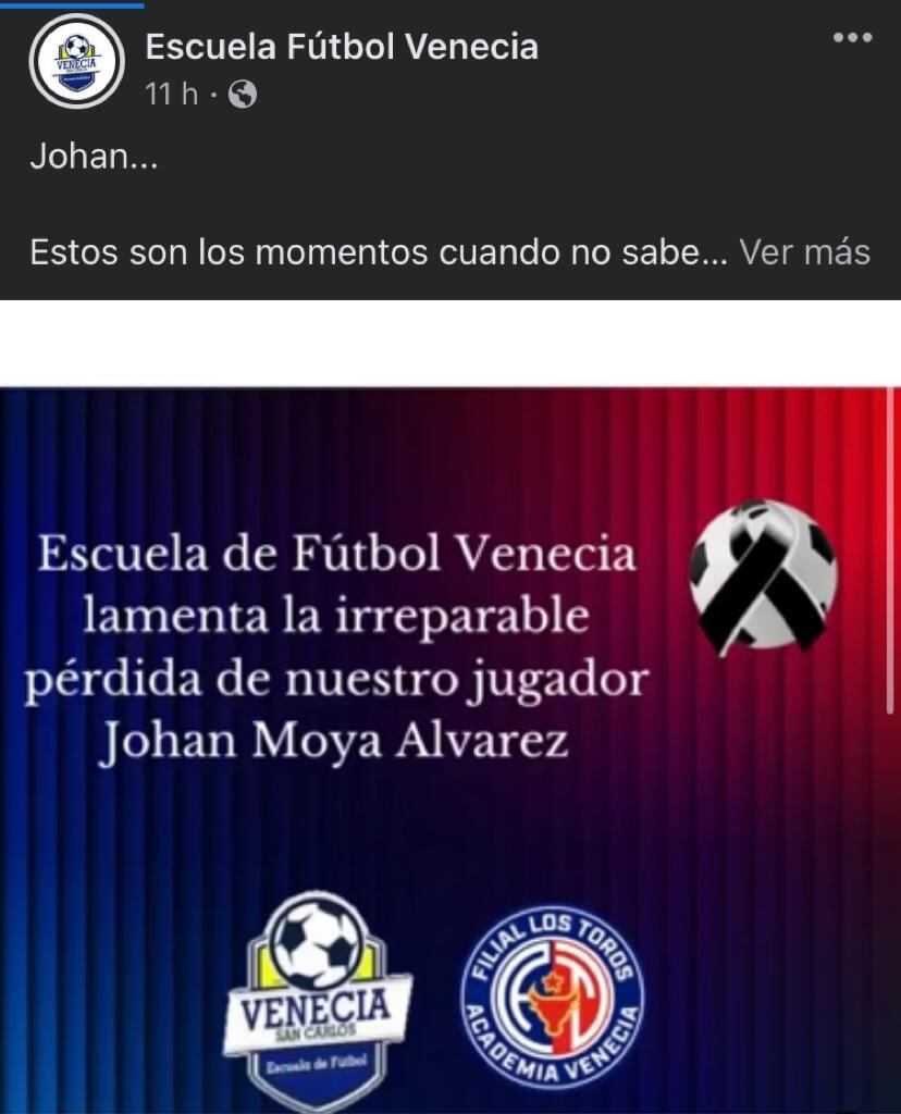 El joven estaba en la Escuela de Fútbol de Venecia, ellos expresaron su dolor en su cuenta de Facebook.
