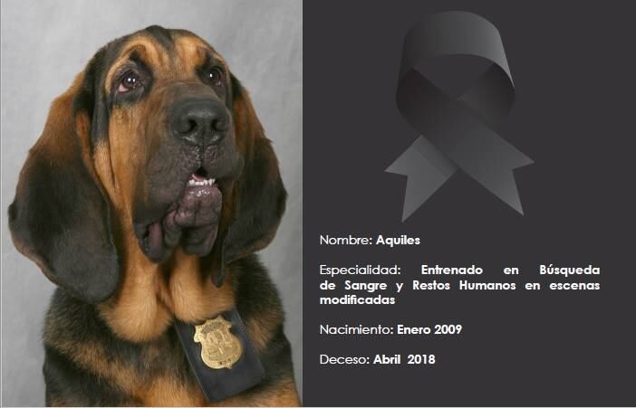 Se trata de un can de raza bloodhunt, que ayudó a resolver muchísimos casos, ya que era el único en el país especializado en la búsqueda de restos humanos y estaba certificado por ser el único que hacía esa clase de trabajos en toda Latinoamérica.