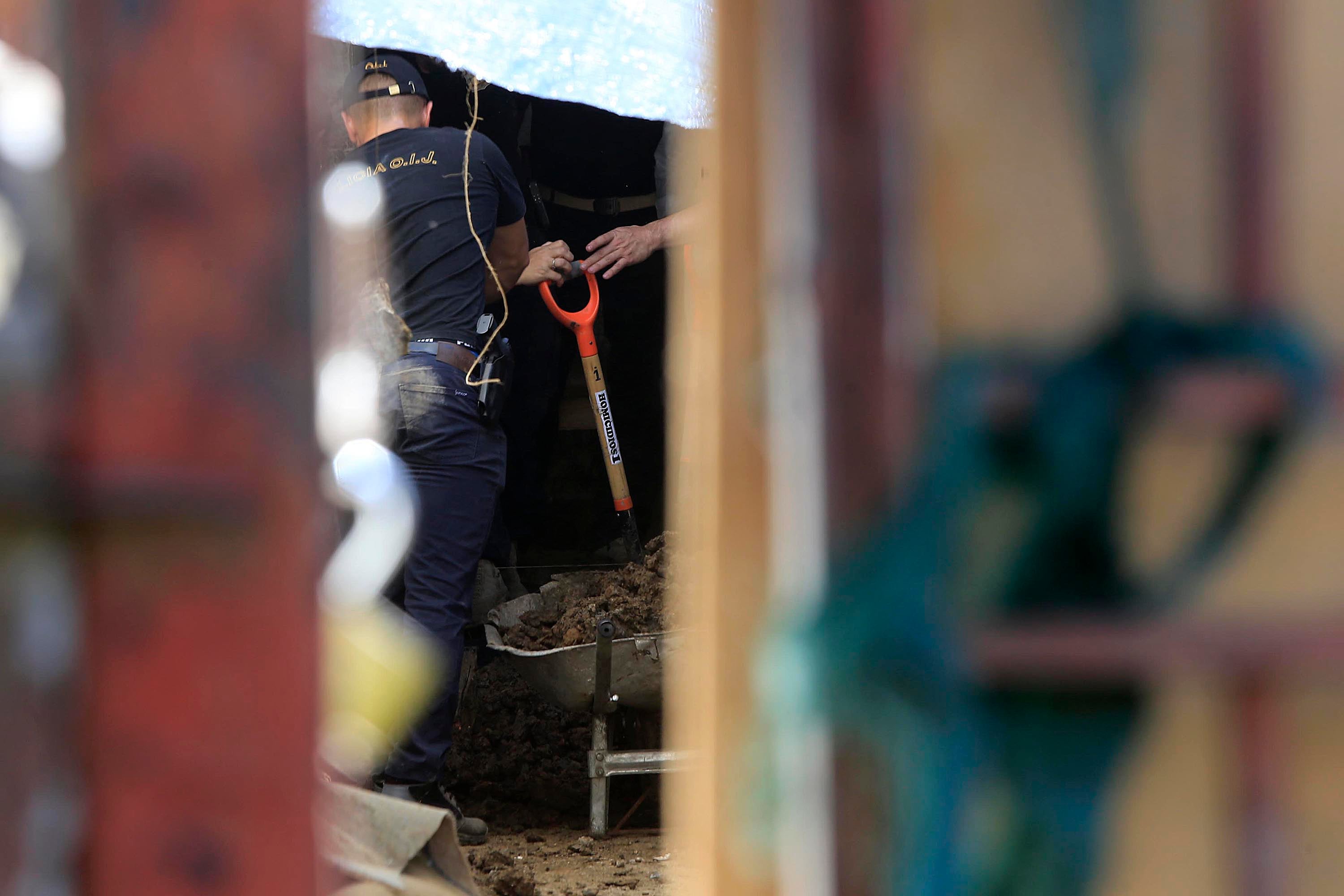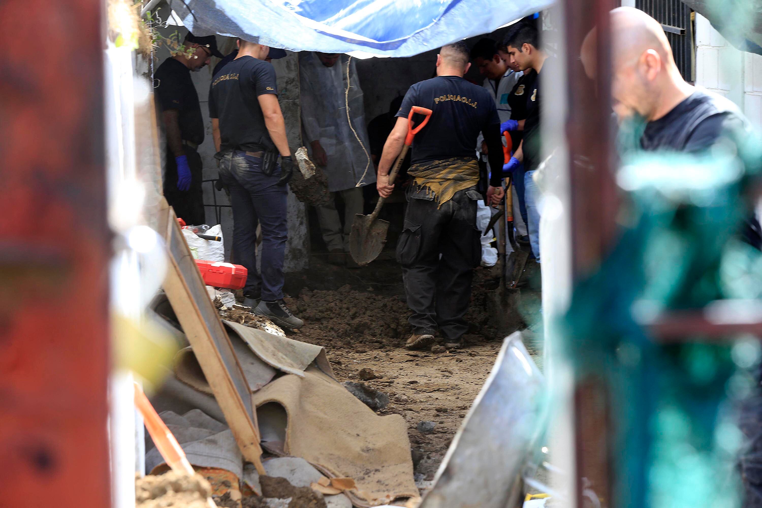 Los investigadores recibieron la orden del juez la mañana de este martes y allanaron. Llevaron perros entrenados y uno de los perros dio positivo, es decir, indicó que en una parte de la casa había rastros humanos. Poco después los agentes empezaron a volar pala.