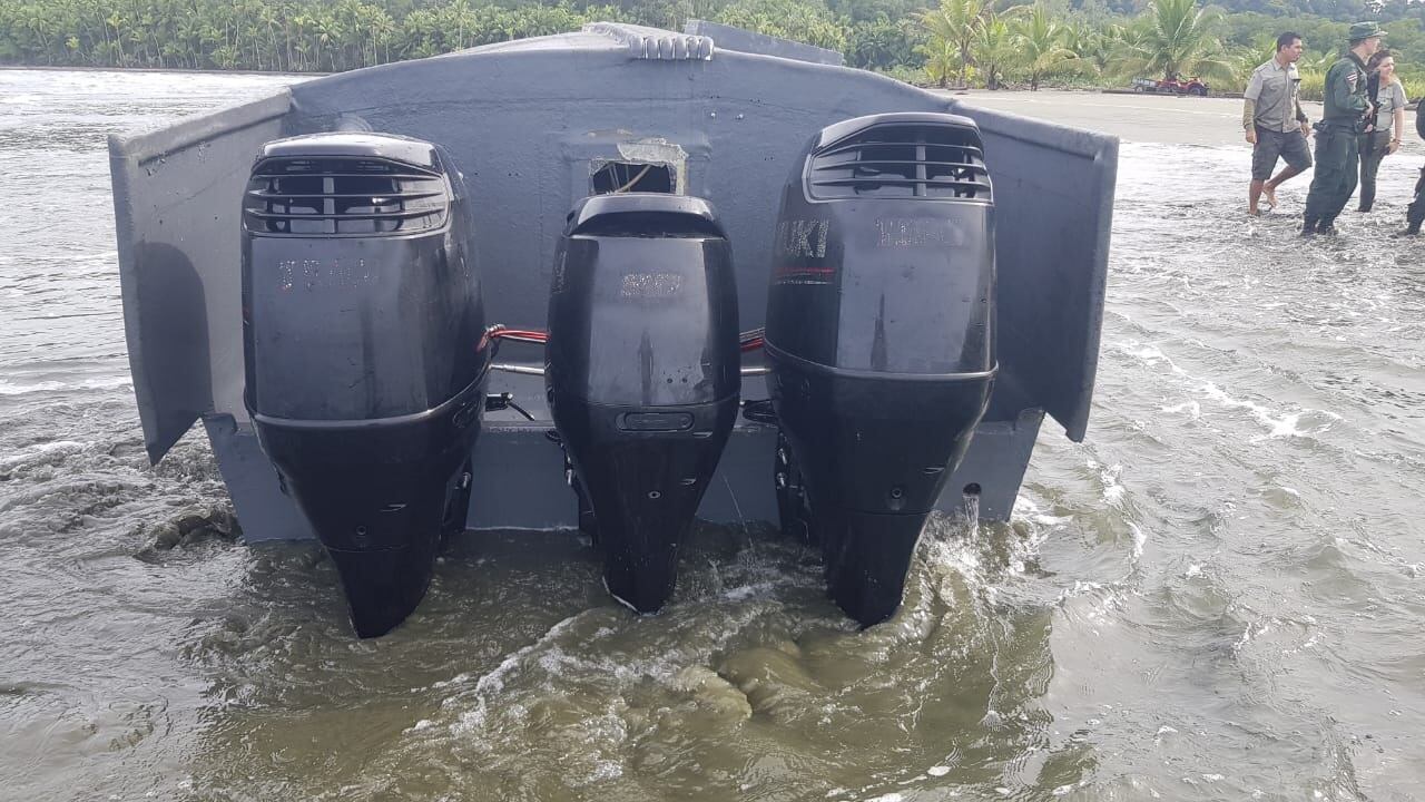 Ellos dejaron botados varios celulares y un GPS, el semisumergible contaba con tres motores fuera de borda y tiene un largo de 15 metros.