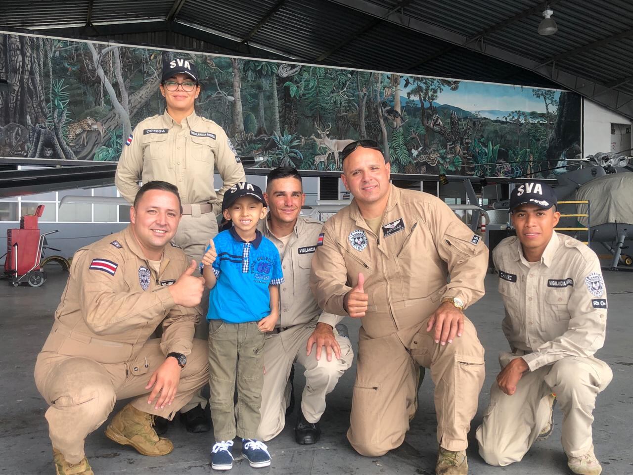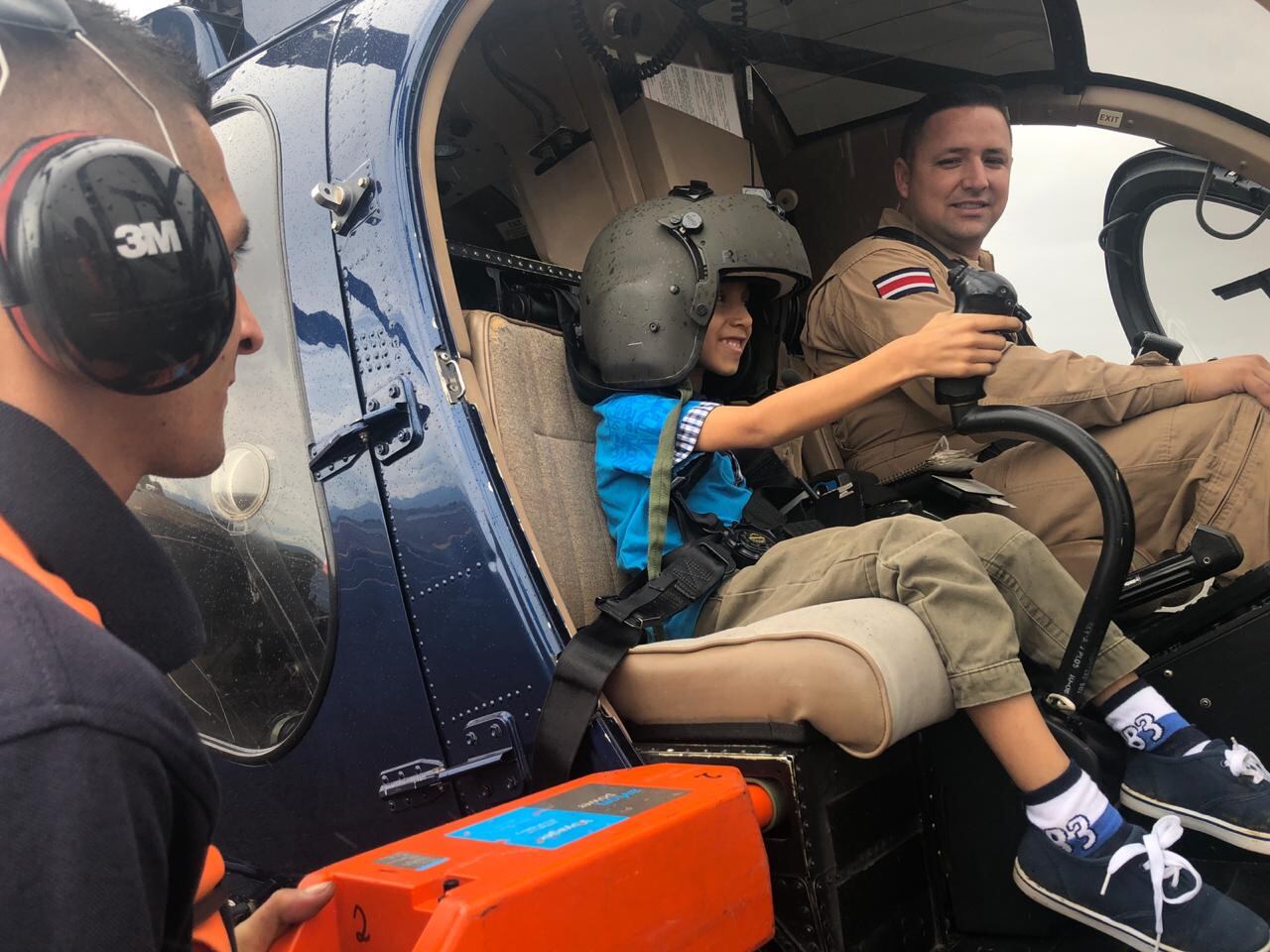 El sueño de este valiente niño llegó a los oídos del piloto Aguilar, del Servicio de Vigilancia Aérea (SVA) del Ministerio de Seguridad Pública (MSP), quien se encargó de hacerlo realidad el lunes.