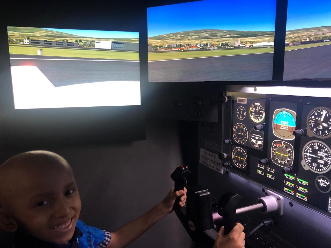 Johnny no solo los vio de largo, sino que los pudo tocar, se montó y voló en uno de ellos por medio de un simulador.