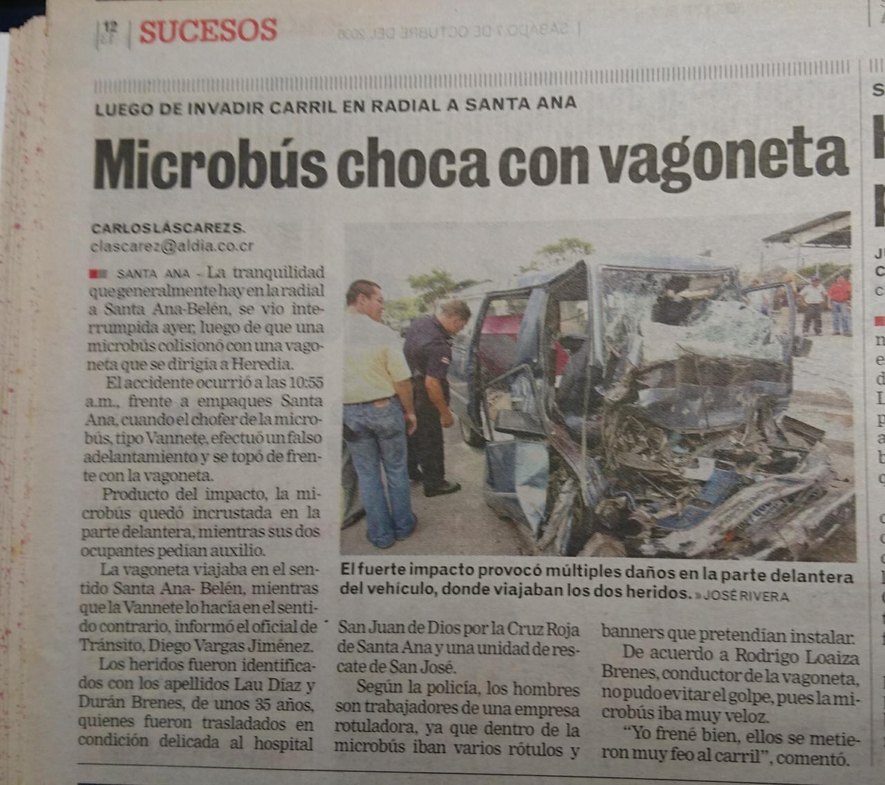 Durán iba en el asiento del acompañante. Cuando circulaban por Pozos de Santa Ana el compañero que manejaba invadió el carril contrario y chocó contra una vagoneta.